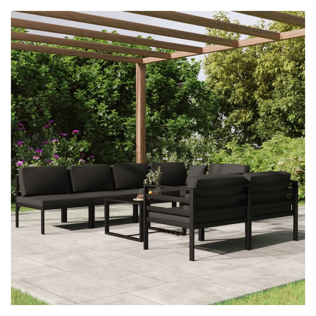 Salon de jardin 8 pcs avec coussins Aluminium Anthracite