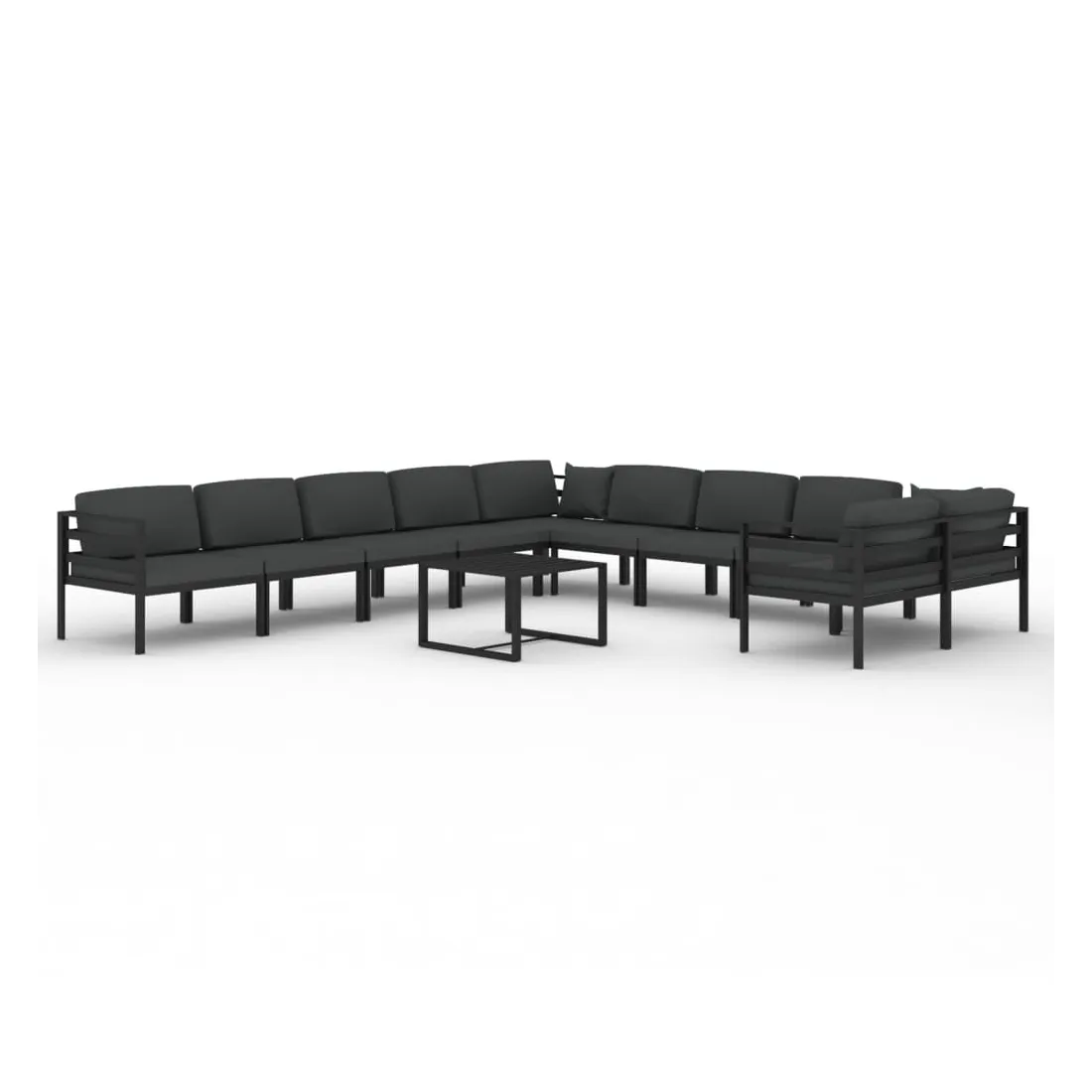 Salon de jardin 11 pcs avec coussins Aluminium Anthracite