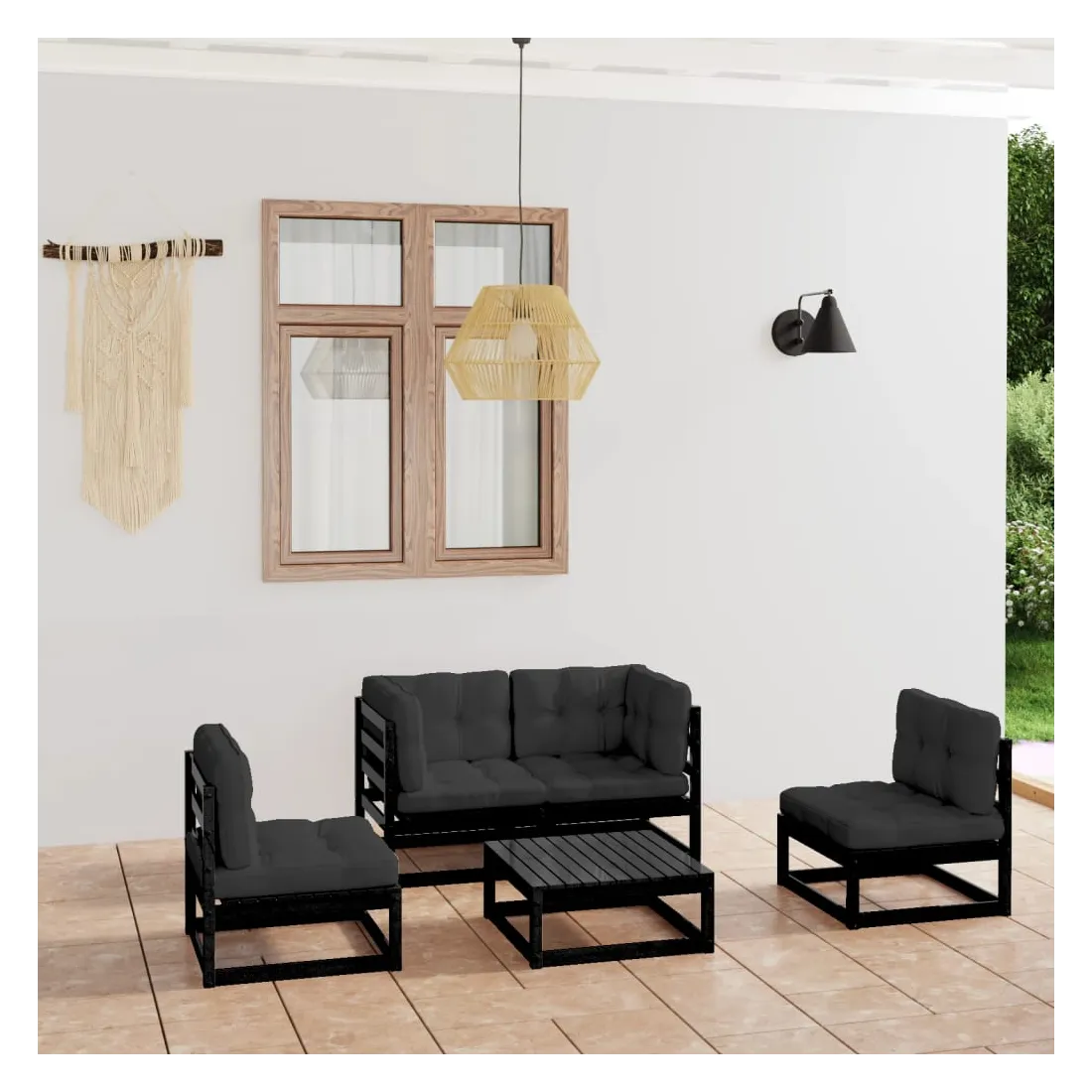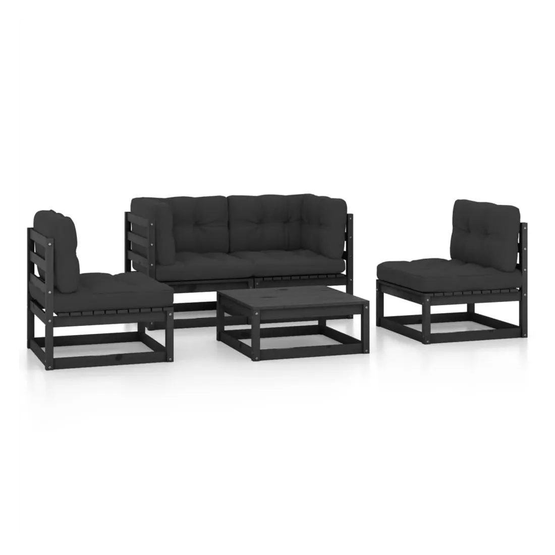 Salon de jardin 5 pcs avec coussins Bois de pin massif