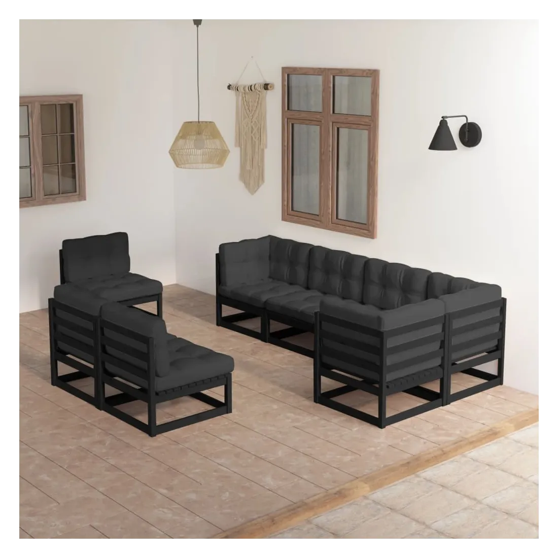 Salon de jardin 8 pcs avec coussins Bois de pin massif