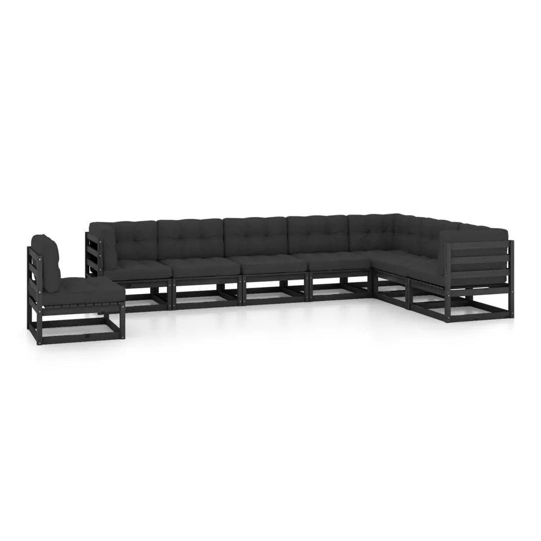 Salon de jardin 8 pcs avec coussins Noir Bois de pin massif
