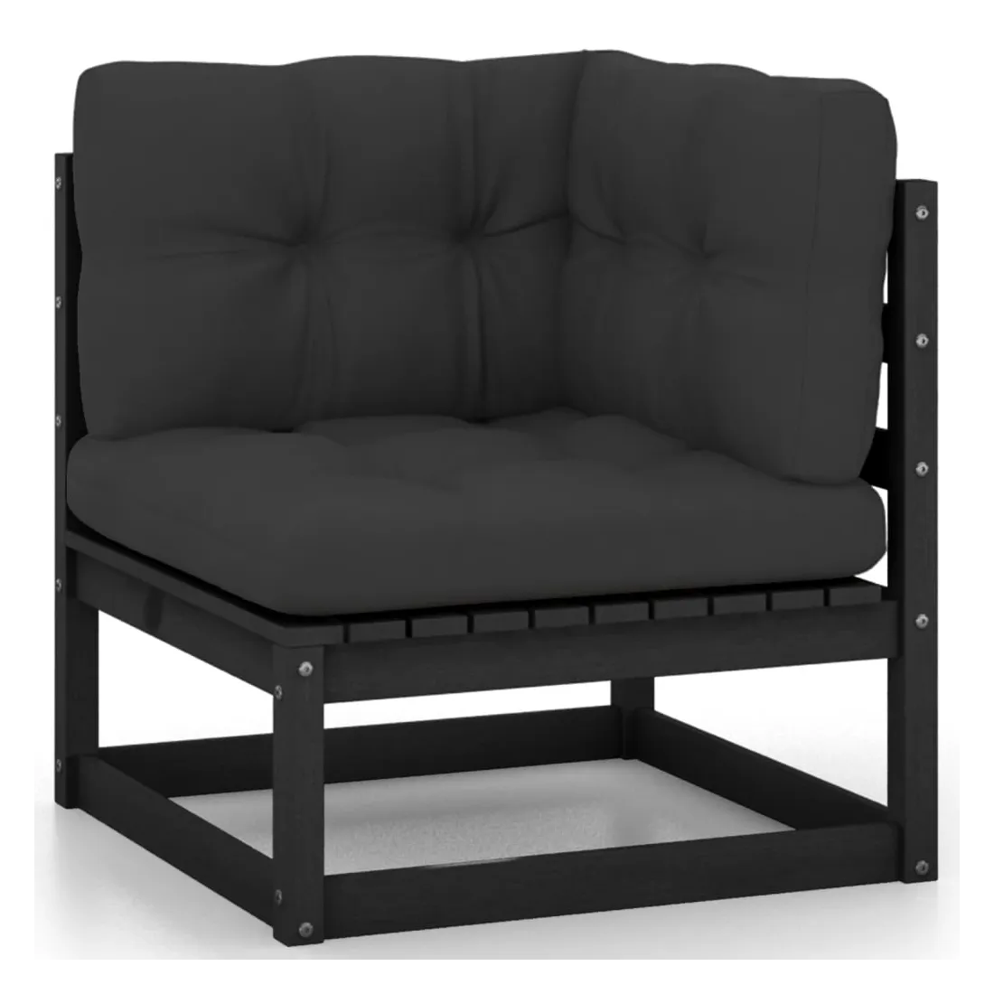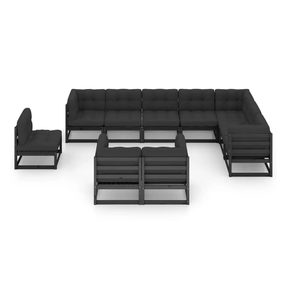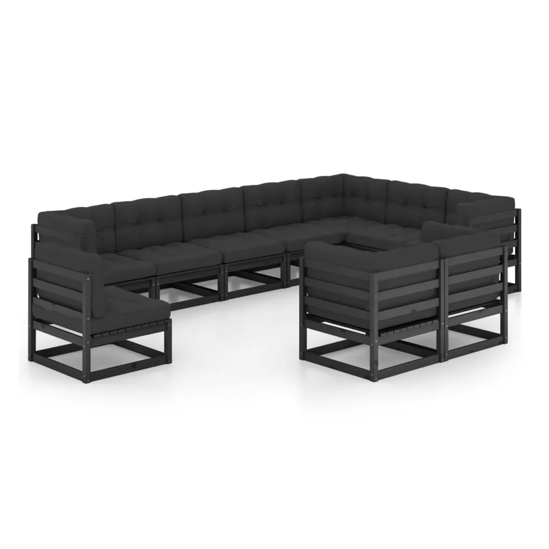 Salon de jardin 10 pcs avec coussins Noir Bois de pin massif
