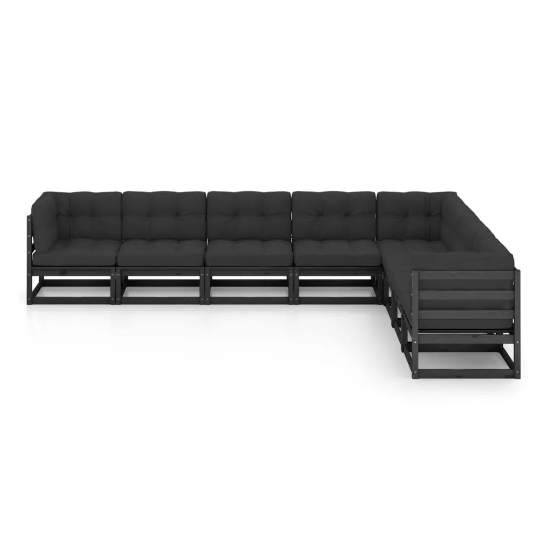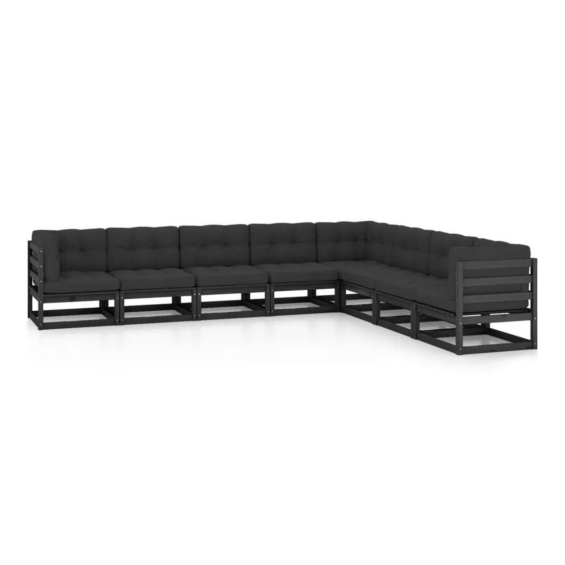 Salon de jardin 8 pcs avec coussins Noir Bois de pin massif
