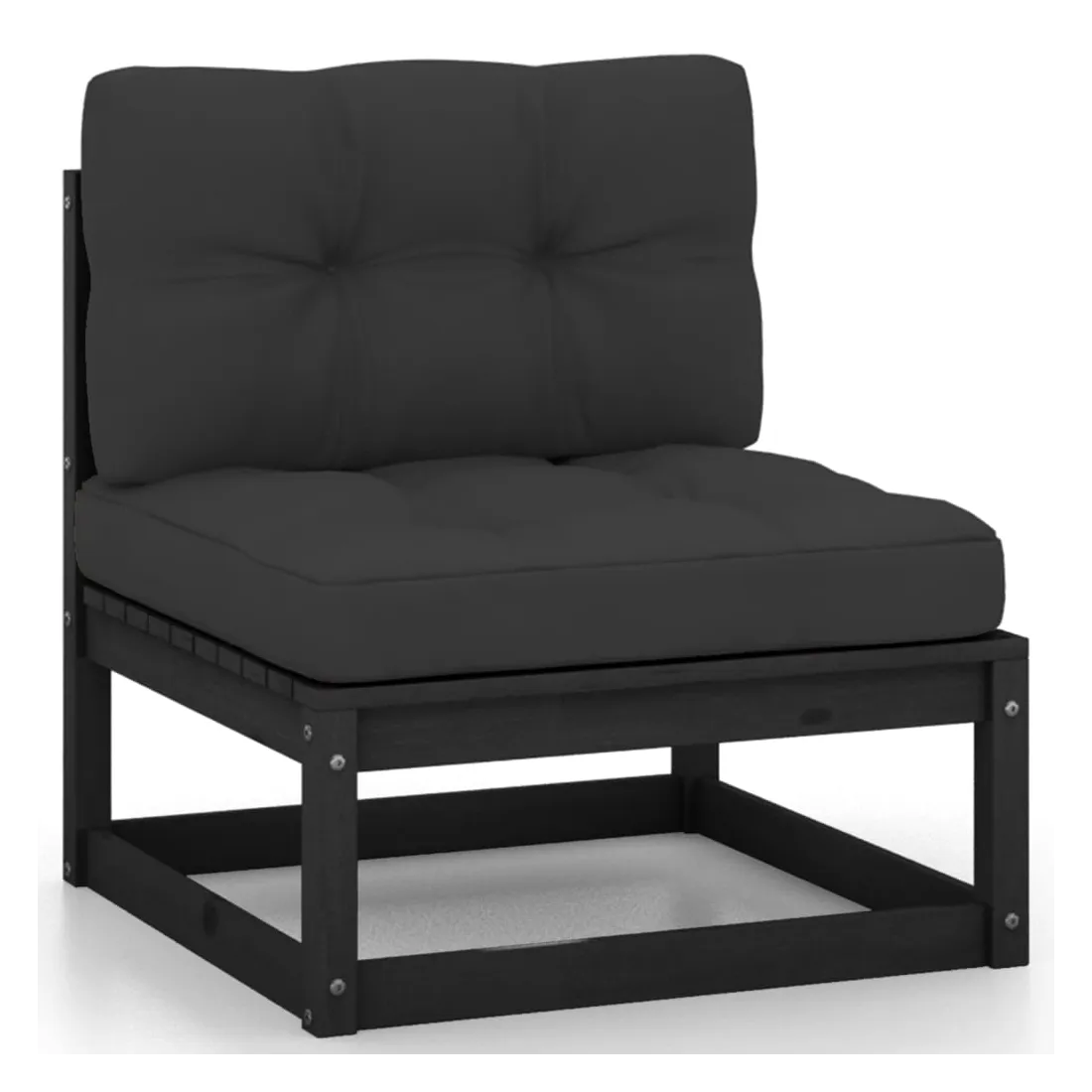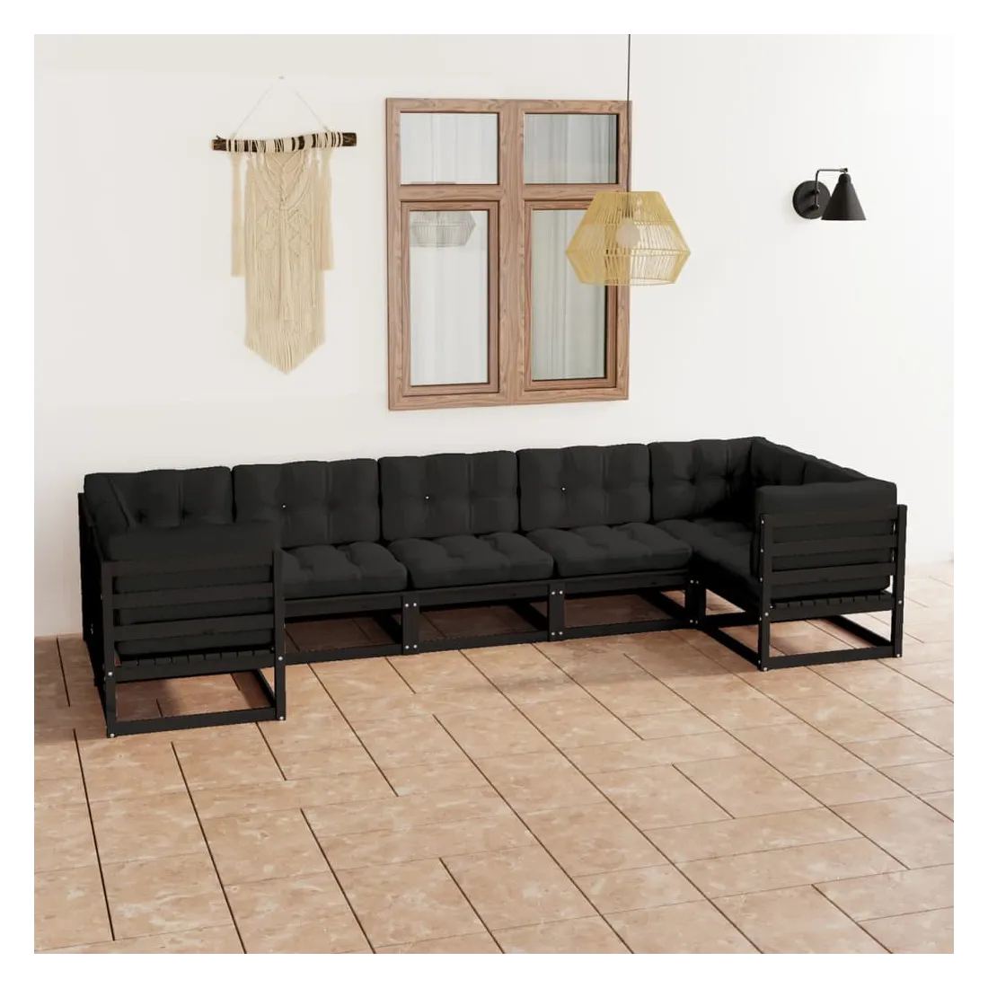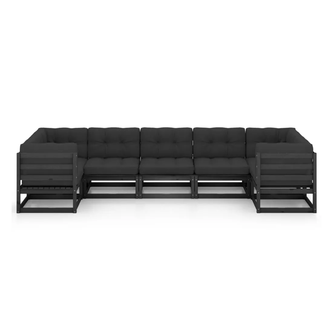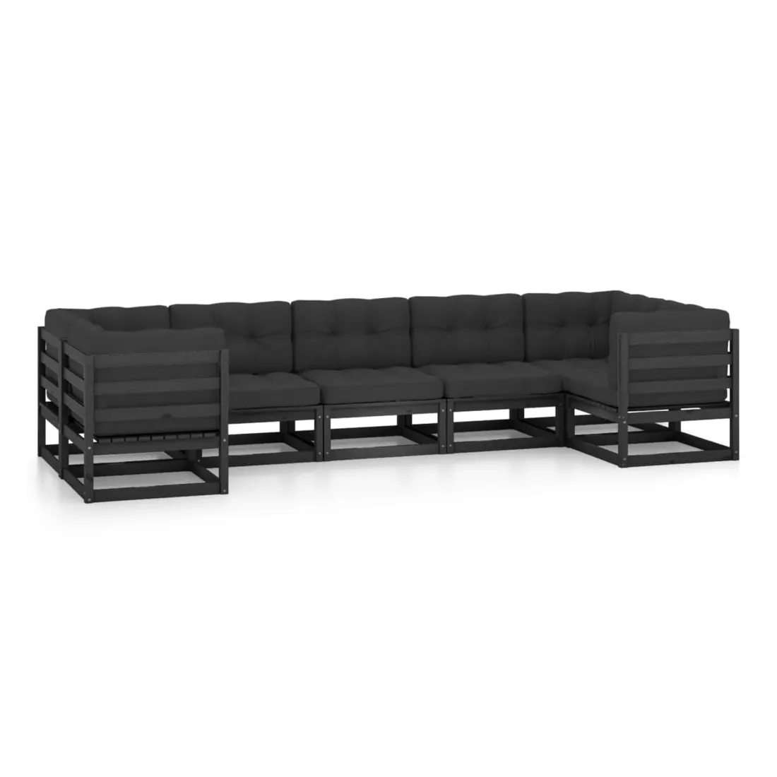 Salon de jardin 7 pcs avec coussins noir bois de pin massif
