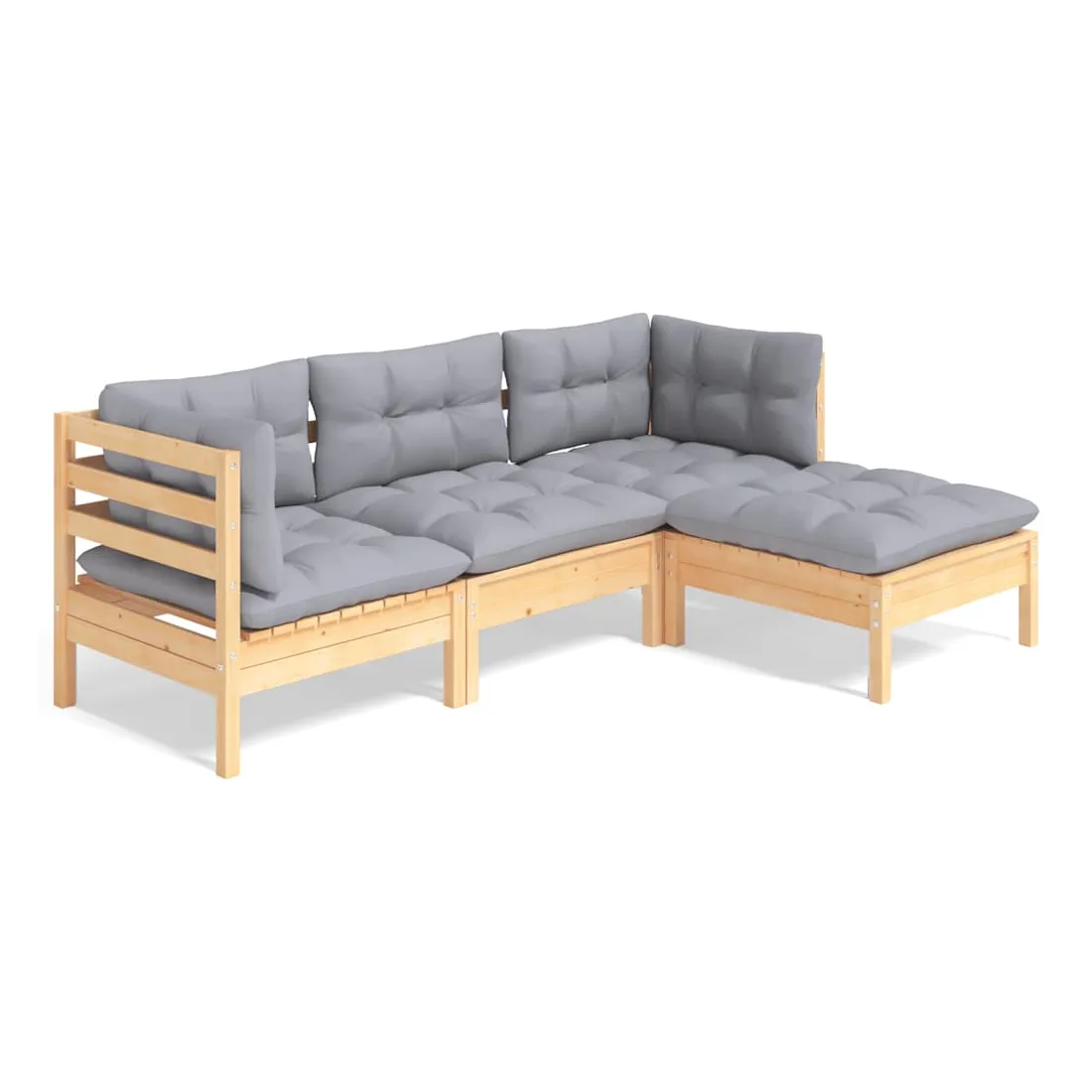 Cet ensemble de salon de jardin en bois est un choix excellent pour vous détendre et profiter du bon temps, faire une sieste ou discuter avec votre famille ou vos amis. Le salon de patio est fabriqué en bois de pin massif, ce qui le rend robuste et stable. Les coussins ajoutent un confort supplémentaire. Vous pouvez le combiner avec d’autres segments modulaires pour créer vos propres configurations de salon de jardin ! Remarque : afin de prolonger la durée de vie des meubles d'extérieur, nous vous recommandons de les protéger avec une housse imperméable.