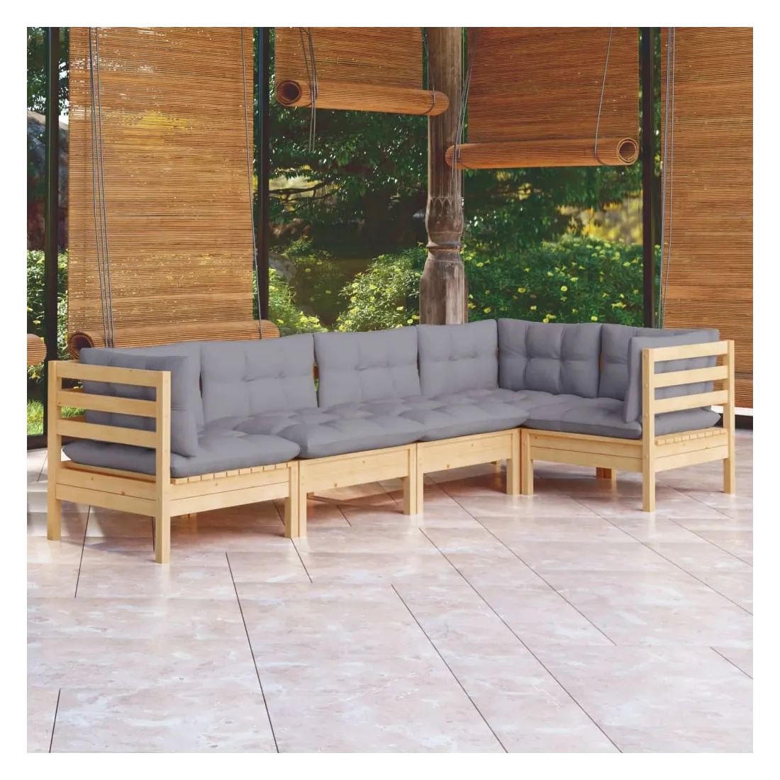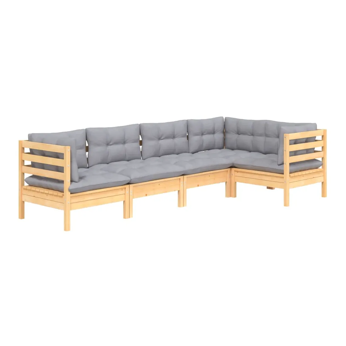 Cet ensemble de salon de jardin en bois est un choix excellent pour vous détendre et profiter du bon temps, faire une sieste ou discuter avec votre famille ou vos amis. Le salon de patio est fabriqué en bois de pin massif, ce qui le rend robuste et stable. Les coussins ajoutent un confort supplémentaire. Vous pouvez le combiner avec d’autres segments modulaires pour créer vos propres configurations de salon de jardin ! Remarque : afin de prolonger la durée de vie des meubles d'extérieur, nous vous recommandons de les protéger avec une housse imperméable.