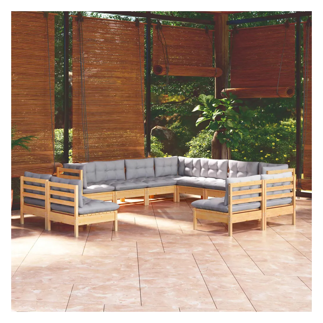 Ce salon de jardin est un excellent choix pour vous détendre et profiter du beau temps, faire une sieste ou discuter avec votre famille ou vos amis. Le salon de patio est fabriqué en bois de pin massif, ce qui le rend robuste et stable. Les coussins ajoutent un confort supplémentaire. Vous pouvez le combiner avec d’autres segments modulaires pour créer vos propres configurations de salon de jardin ! Remarque : afin de prolonger la durée de vie des meubles d'extérieur, nous vous recommandons de les protéger avec une housse imperméable.