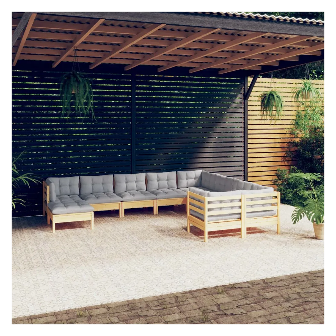 Cet ensemble de salon de jardin en bois est un choix excellent pour vous détendre et profiter du bon temps, faire une sieste ou discuter avec votre famille ou vos amis. Le salon de patio est fabriqué en bois de pin massif, ce qui le rend robuste et stable. Les coussins ajoutent un confort supplémentaire. Vous pouvez le combiner avec d’autres segments modulaires pour créer vos propres configurations de salon de jardin ! Remarque : afin de prolonger la durée de vie des meubles d'extérieur, nous vous recommandons de les protéger avec une housse imperméable.