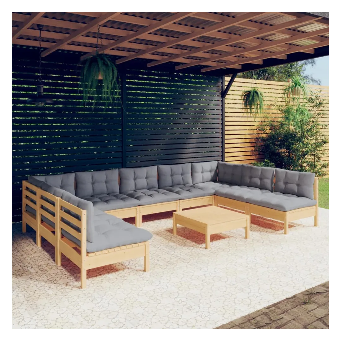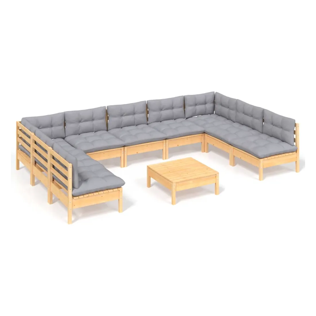 Ce salon de jardin est un excellent choix pour vous détendre et profiter du beau temps, faire une sieste ou discuter avec votre famille ou vos amis. Le salon de patio est fabriqué en bois de pin massif, ce qui le rend robuste et stable. Les coussins ajoutent un confort supplémentaire. Vous pouvez le combiner avec d’autres segments modulaires pour créer vos propres configurations de salon de jardin ! Remarque : afin de prolonger la durée de vie des meubles d'extérieur, nous vous recommandons de les protéger avec une housse imperméable.