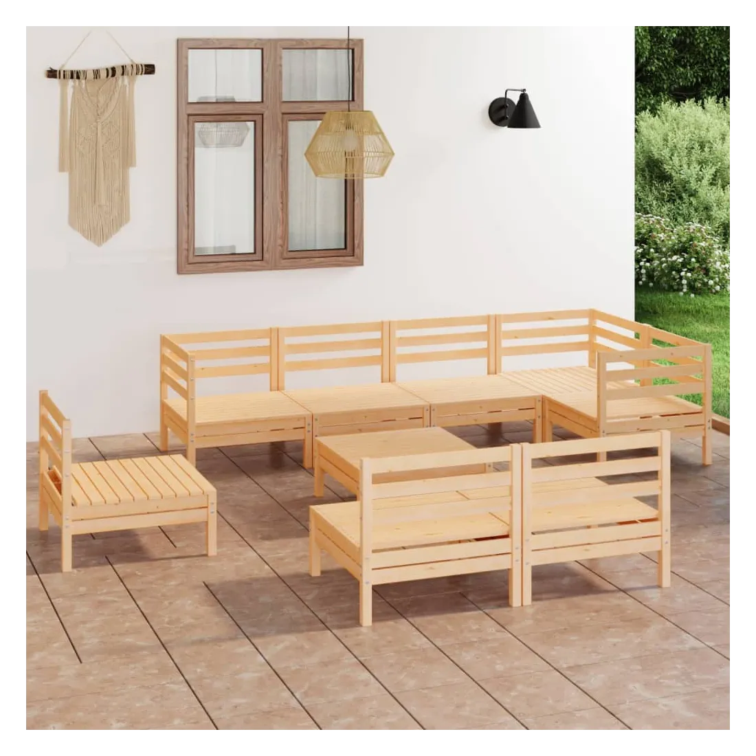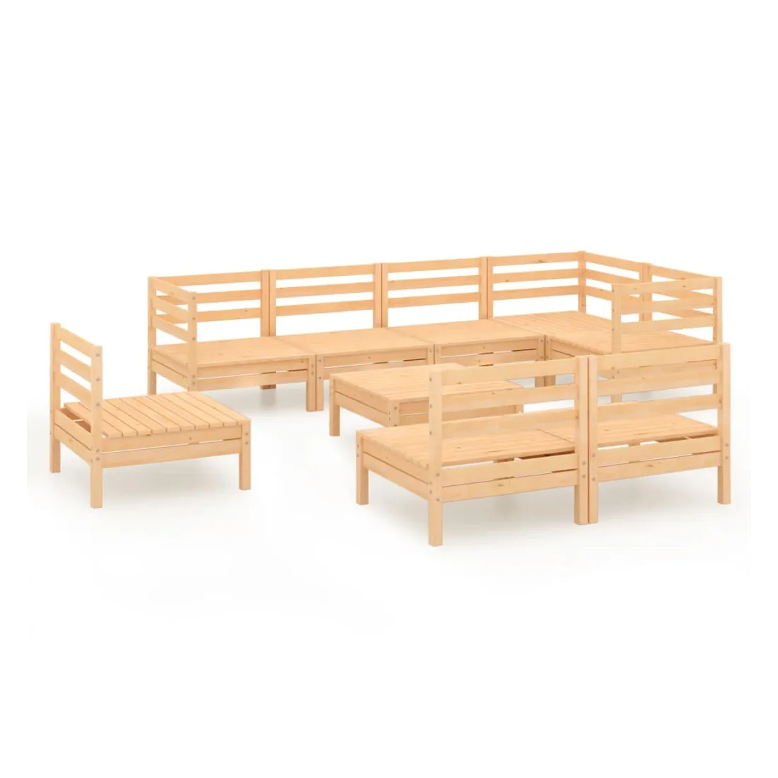 Salon de jardin 9 pcs Bois de pin massif