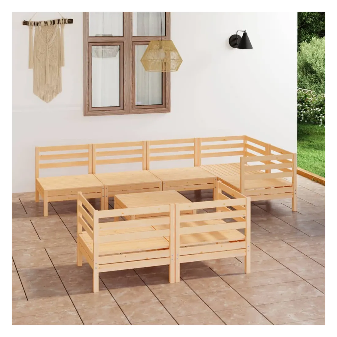 Cet ensemble de salon de jardin en bois est un choix idéal pour vous détendre, profiter du beau temps, faire une sieste ou discuter en famille ou entre amis. Avec son design intemporel de palette, l'ensemble de canapés en bois ajoute une touche de charme rustique à votre terrasse, jardin ou salon. Fabriqué en bois de pin massif, cet ensemble de mobilier d'extérieur est très durable et résistant aux intempéries. Cet ensemble de canapés a une construction solide et nécessite peu d'entretien. De plus, la conception modulaire permet également de placer l'ensemble dans n'importe quel arrangement selon vos goûts. Remarque : afin de prolonger la durée de vie des meubles d'extérieur, nous vous recommandons de les protéger avec une housse imperméable.