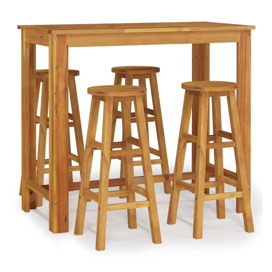 Ensemble de bar de jardin 5 pcs bois d'acacia solide