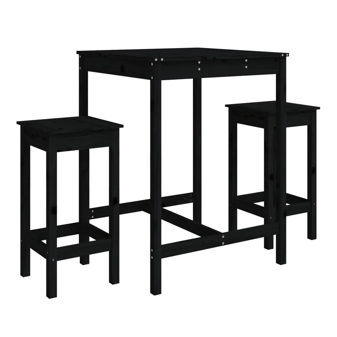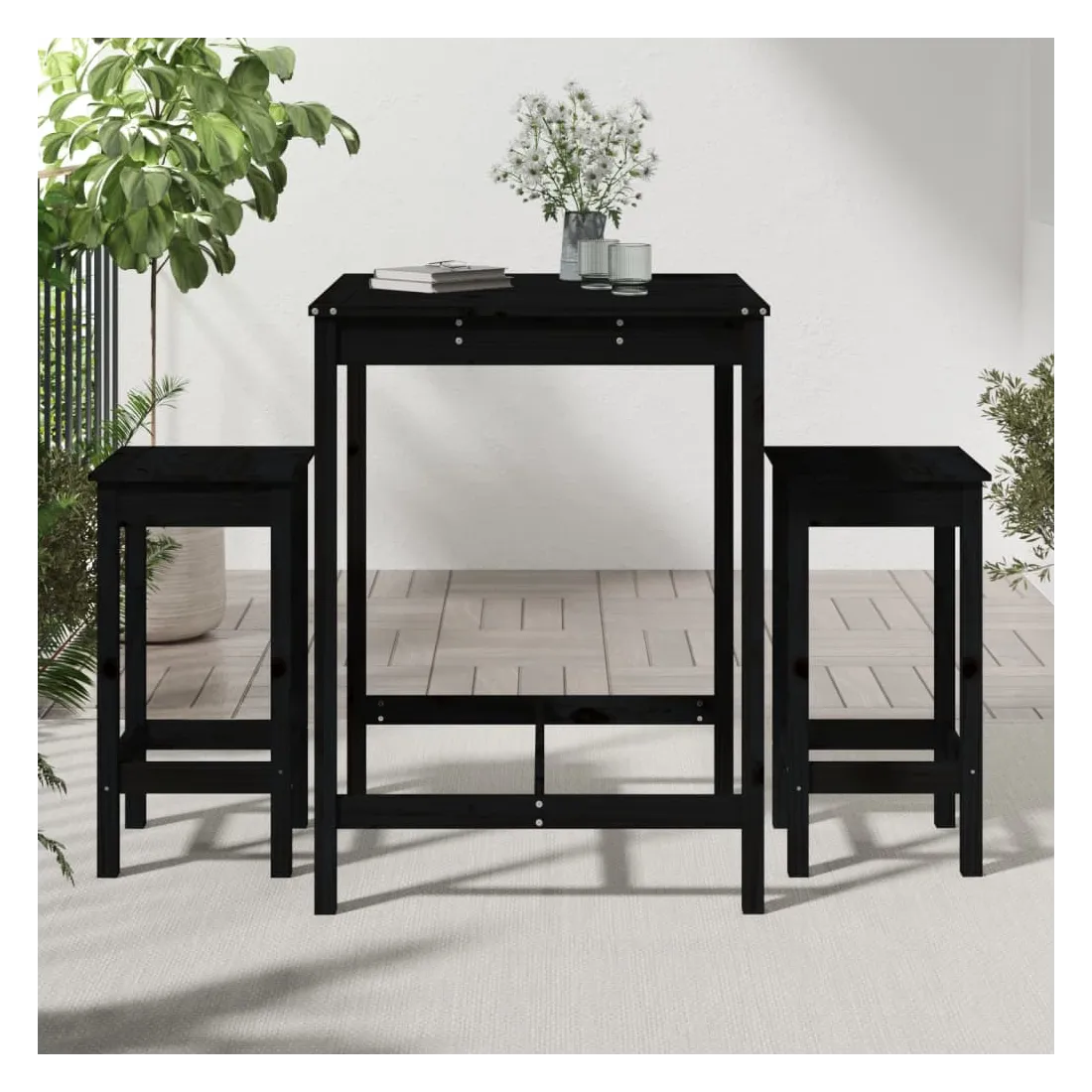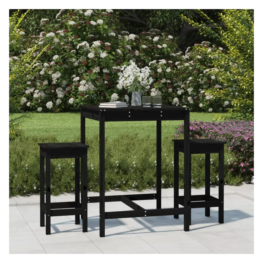 Ensemble de bar de jardin 3 pcs noir bois de pin massif
