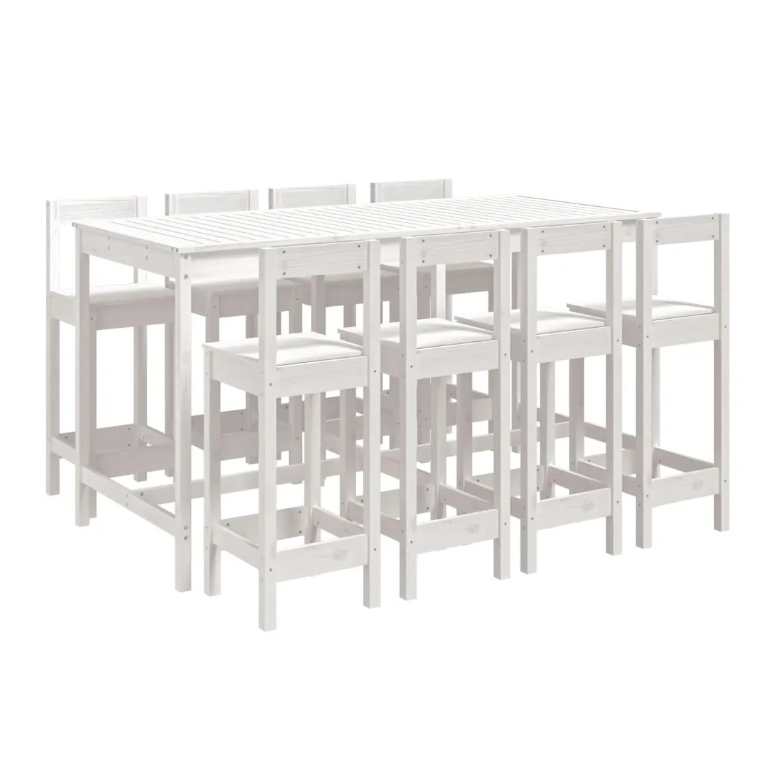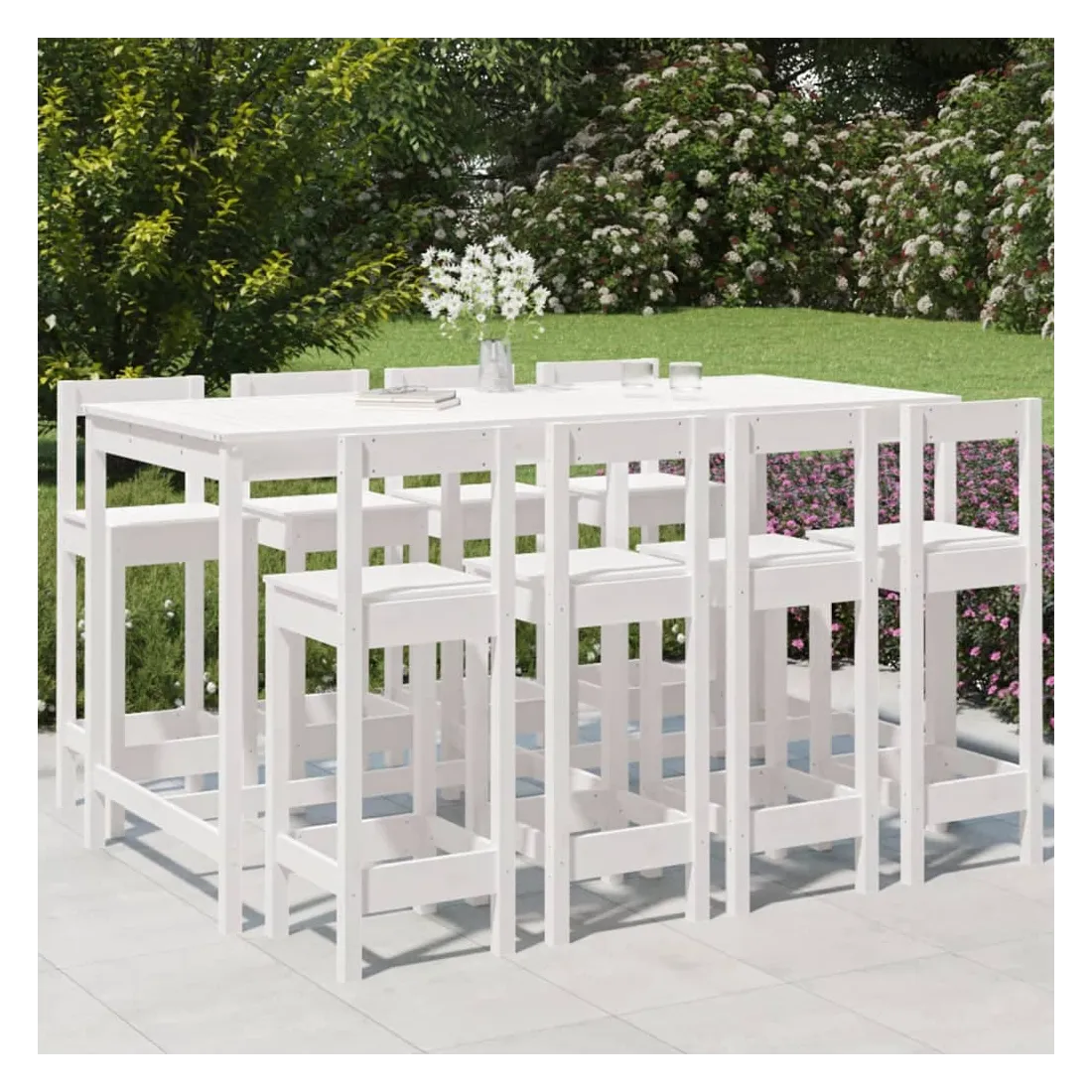 Ensemble de bar de jardin 9 pcs blanc bois de pin massif