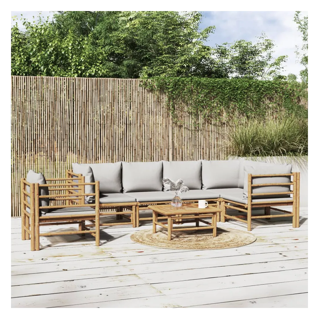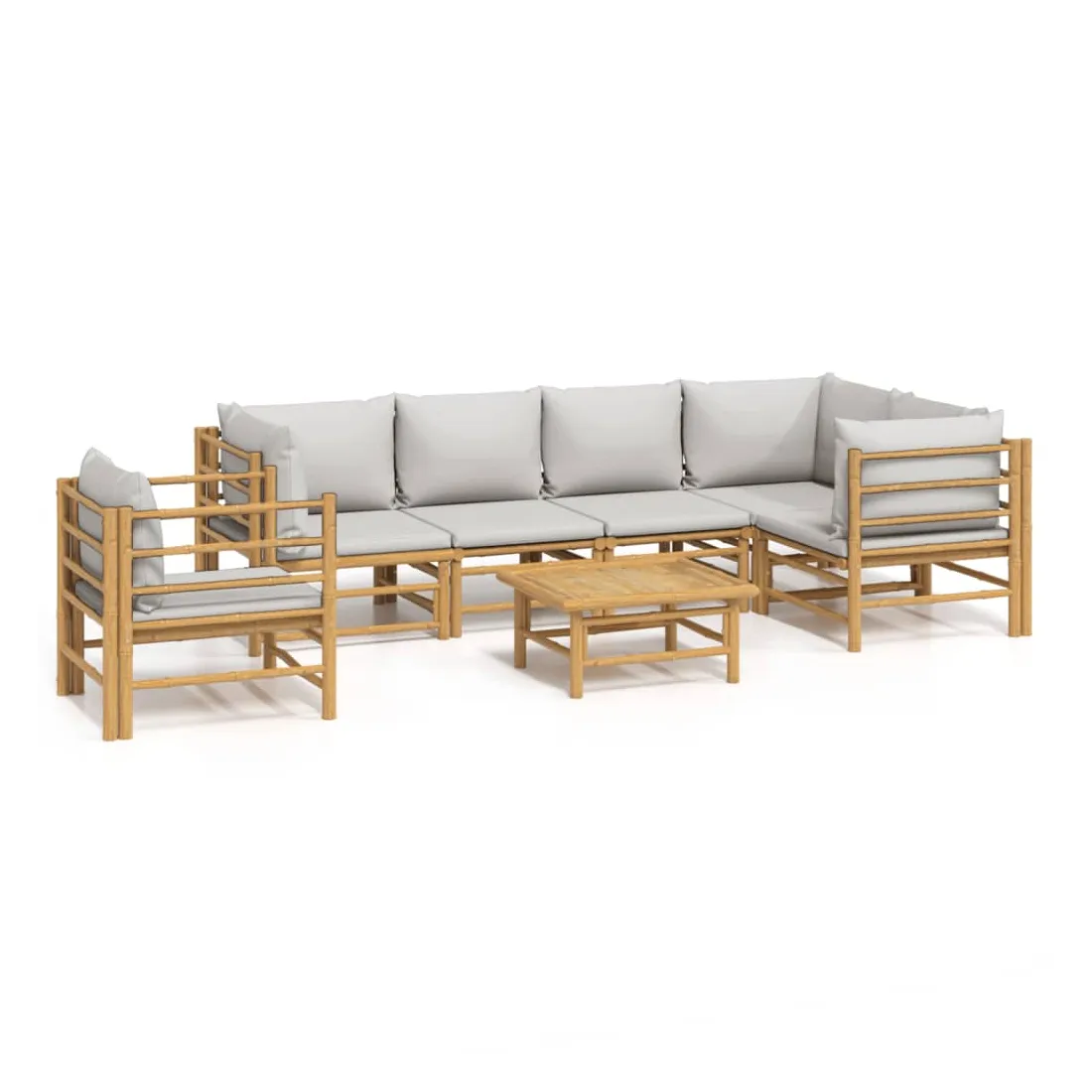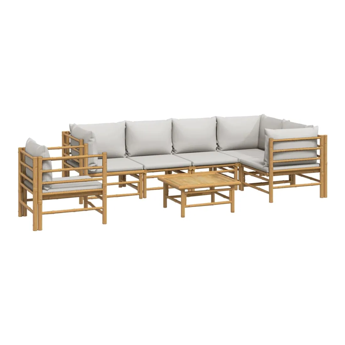 Salon de jardin 7 pcs avec coussins gris clair bambou