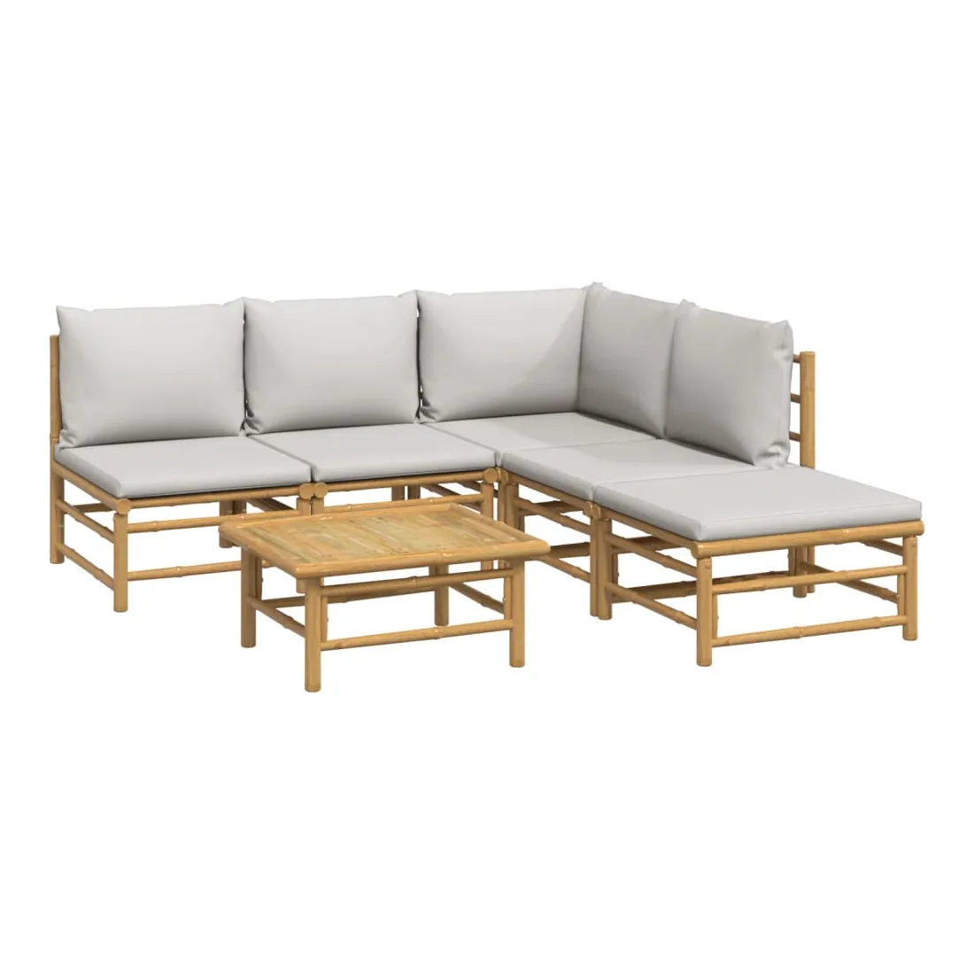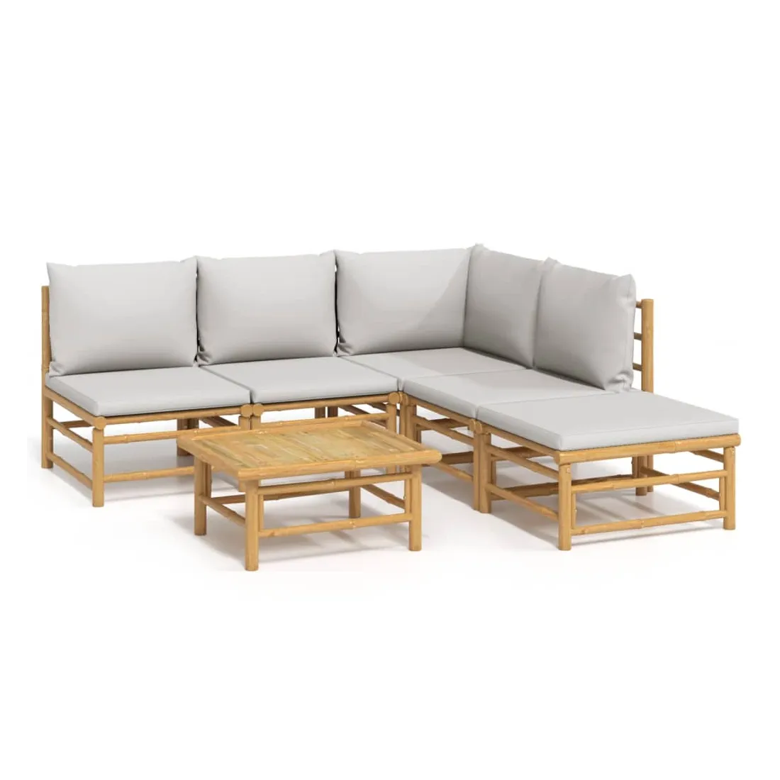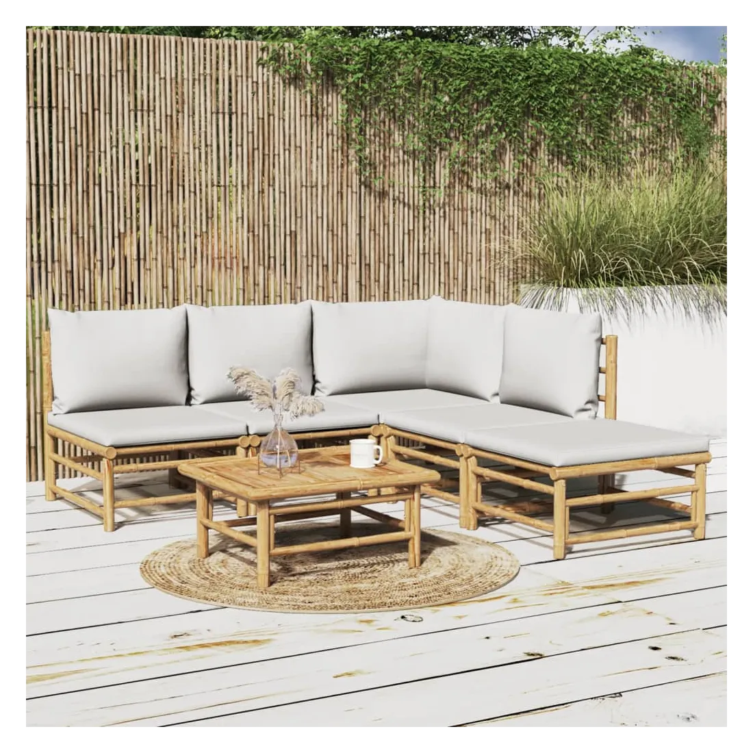 Salon de jardin 6 pcs avec coussins gris clair bambou