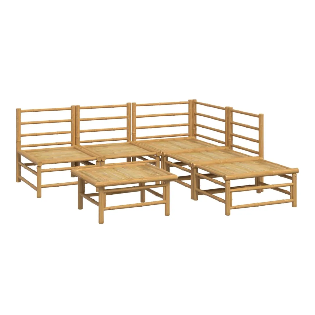 Savourez une tasse de café ou de thé par beau temps dans votre espace extérieur avec cet élégant ensemble de salon de jardin en bambou ! Matériau durable : le bambou est connu pour sa flexibilité et sa dureté. Les meubles en bambou sont une bonne option lorsque vous voulez des meubles d'extérieur solides fabriqués à partir de matériaux naturels.Expérience d'assise confortable : le dossier et l'accoudoir ajoutent un confort d'assise supplémentaire pour l'ensemble de canapé de jardin. De plus, les coussins d'assise et de dossier moelleux offrent un confort pendant votre temps d'assise.Table pratique : la table robuste est parfaite pour placer des repas, des boissons et d'autres objets décoratifs.Conception modulaire : l'ensemble de salon est flexible et facile à déplacer, vous pouvez donc le combiner avec d'autres segments modulaires dans la boutique en ligne pour créer vos propres configurations d'ensemble de salon d'extérieur ! Remarque :Pour que vos meubles d'extérieur restent beaux, nous vous recommandons de les protéger avec une housse imperméable.Bon à savoir :Pour faciliter au maximum le montage, chaque produit est livré avec des instructions.