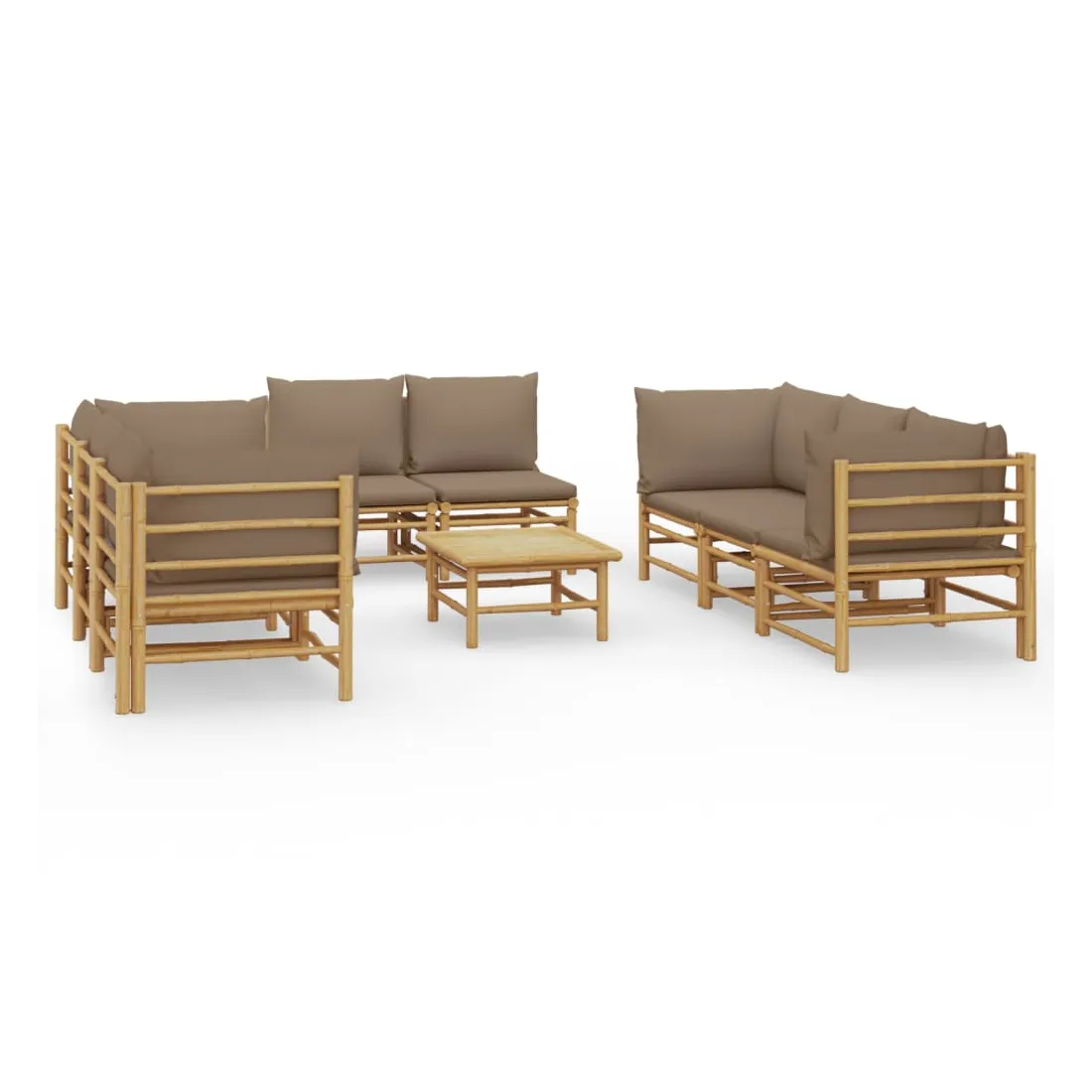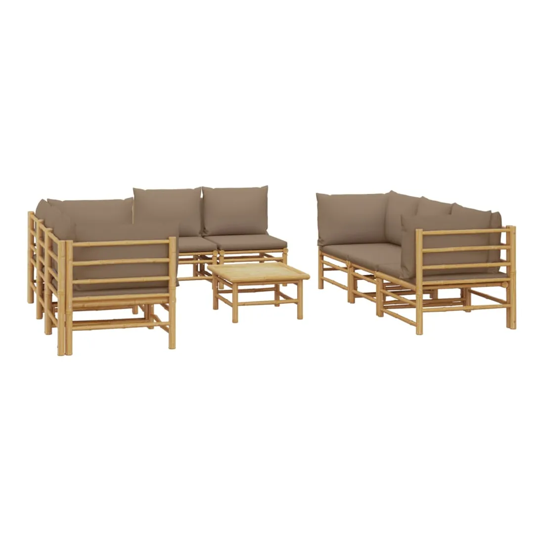 Salon de jardin 9 pcs avec coussins taupe bambou