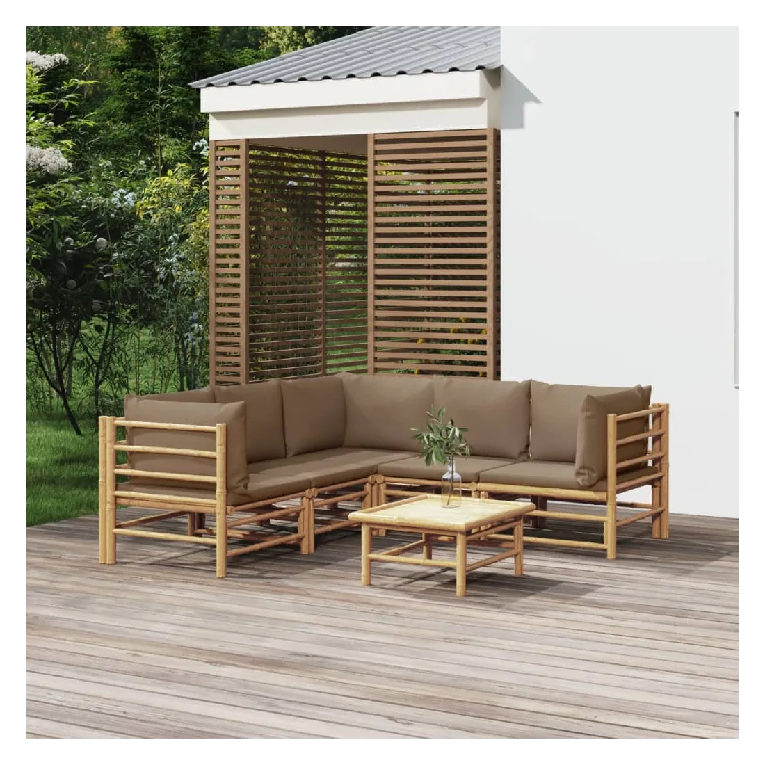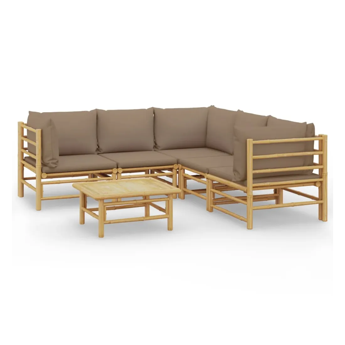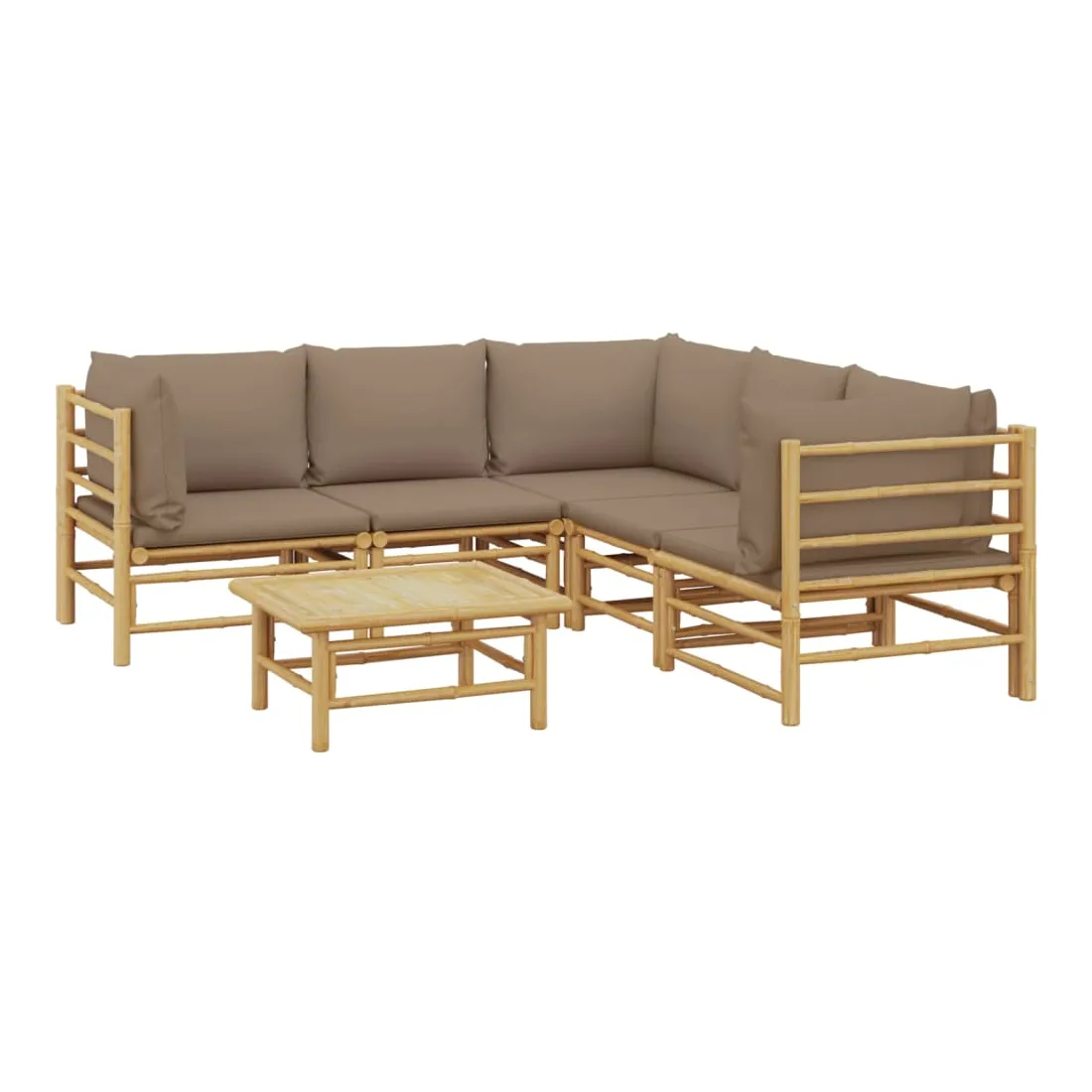 Salon de jardin 6 pcs avec coussins taupe bambou
