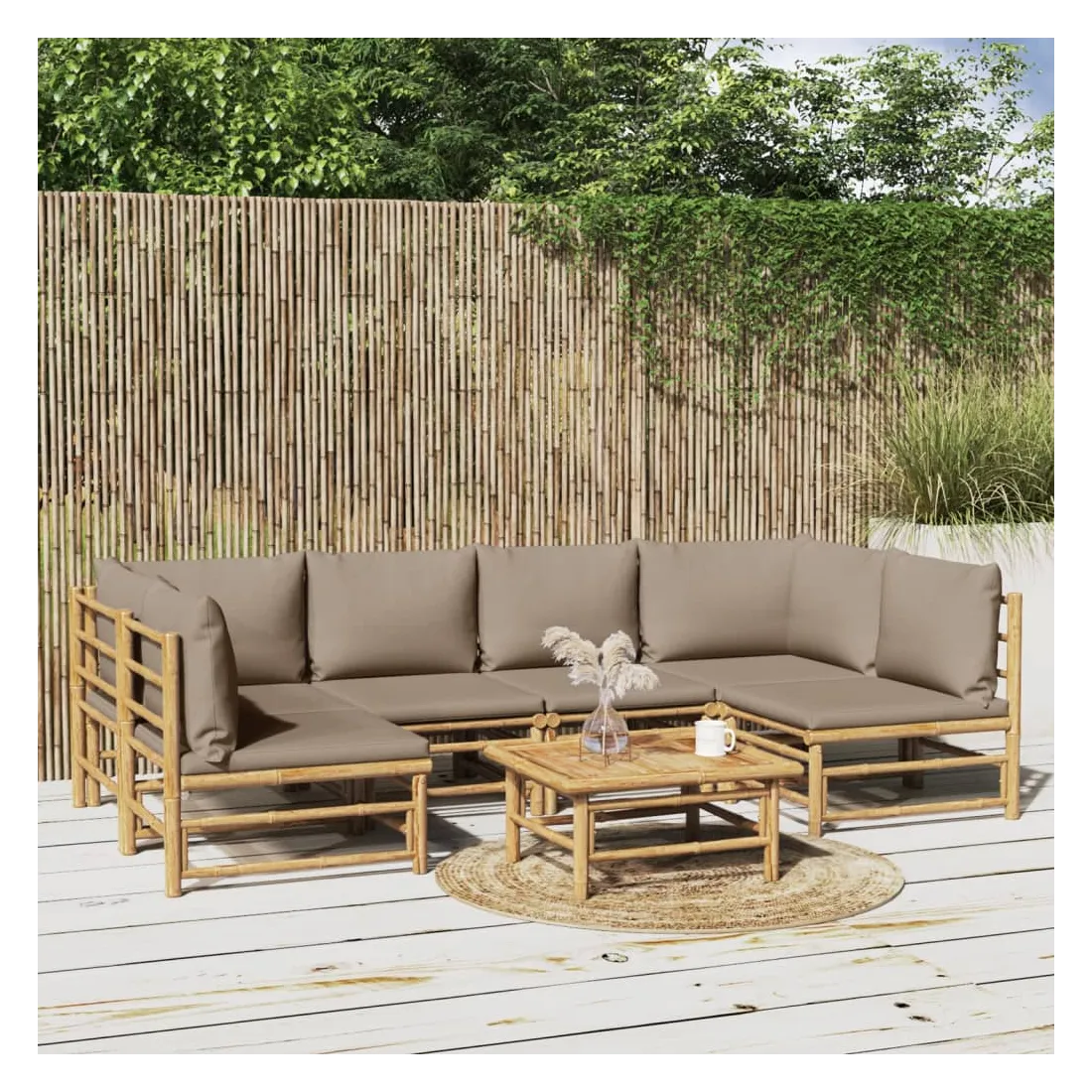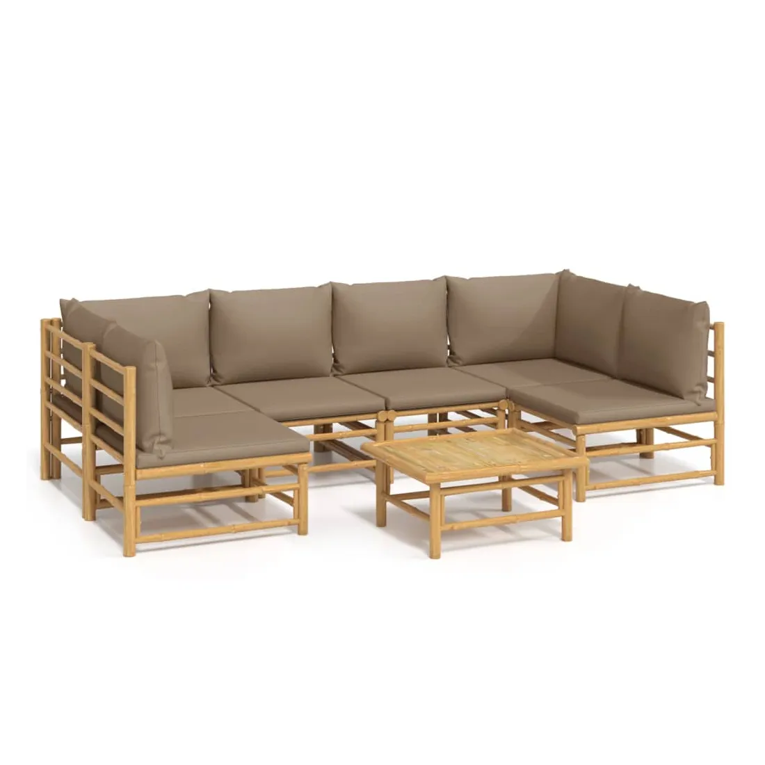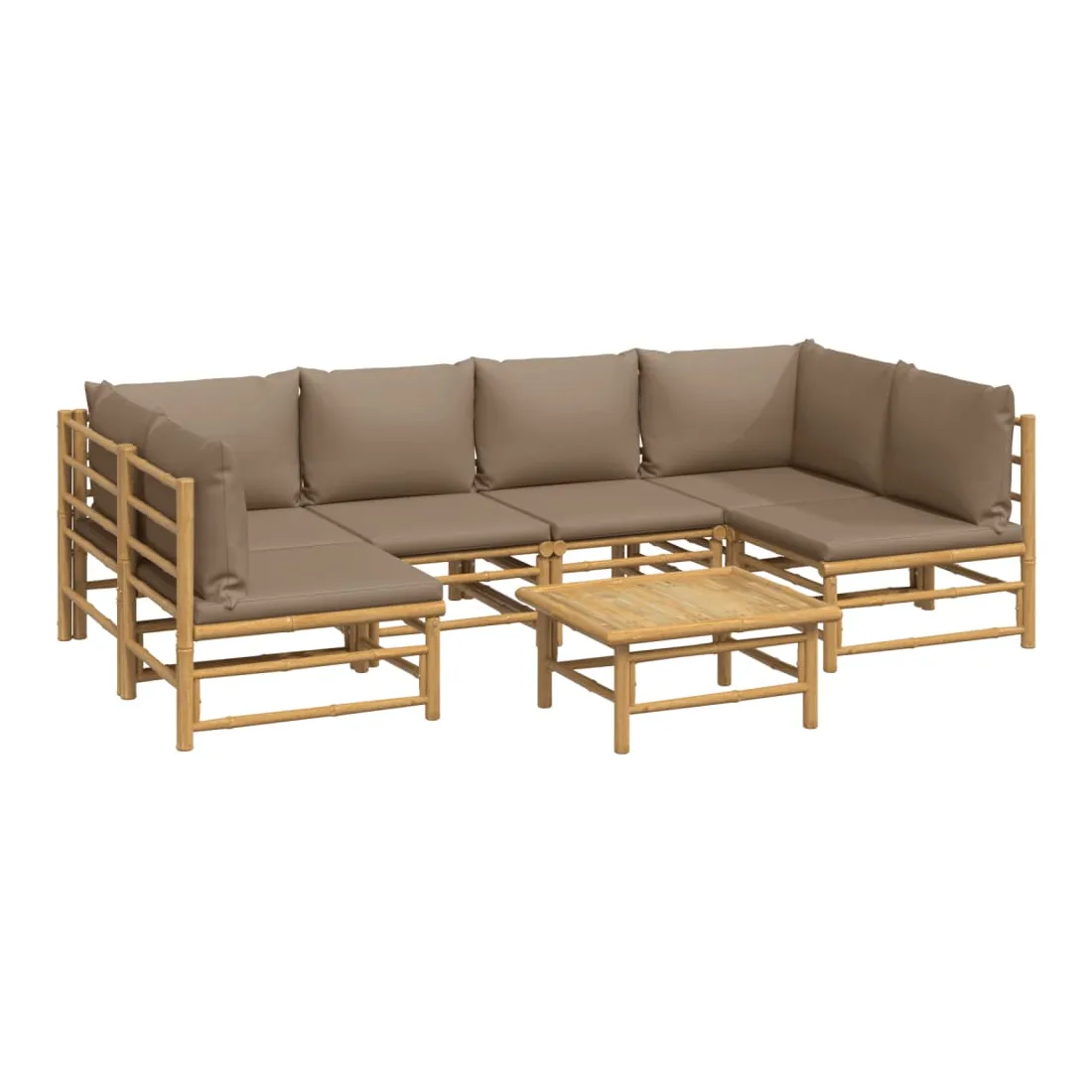 Salon de jardin 7 pcs avec coussins taupe bambou