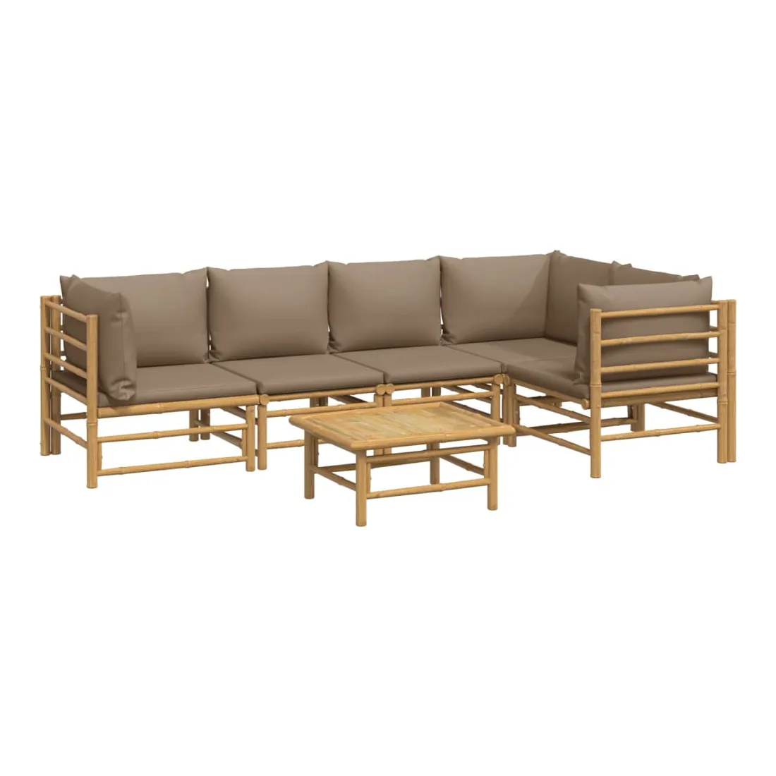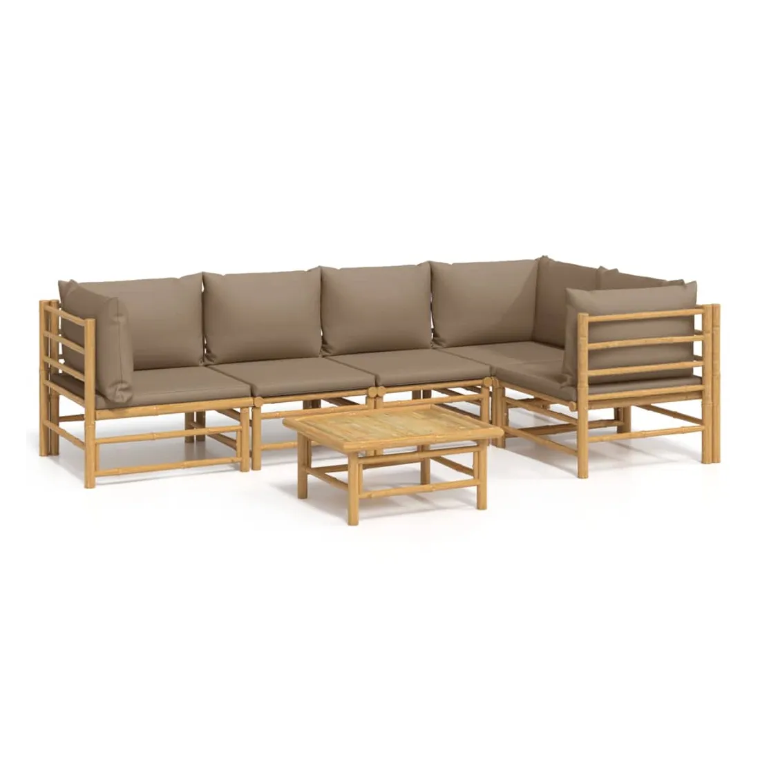 Salon de jardin 6 pcs avec coussins taupe bambou
