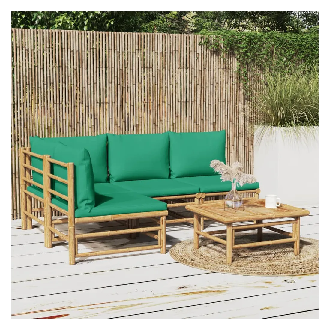 Salon de jardin 5 pcs avec coussins vert bambou