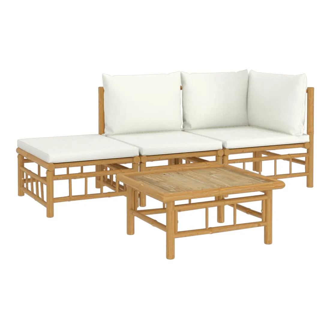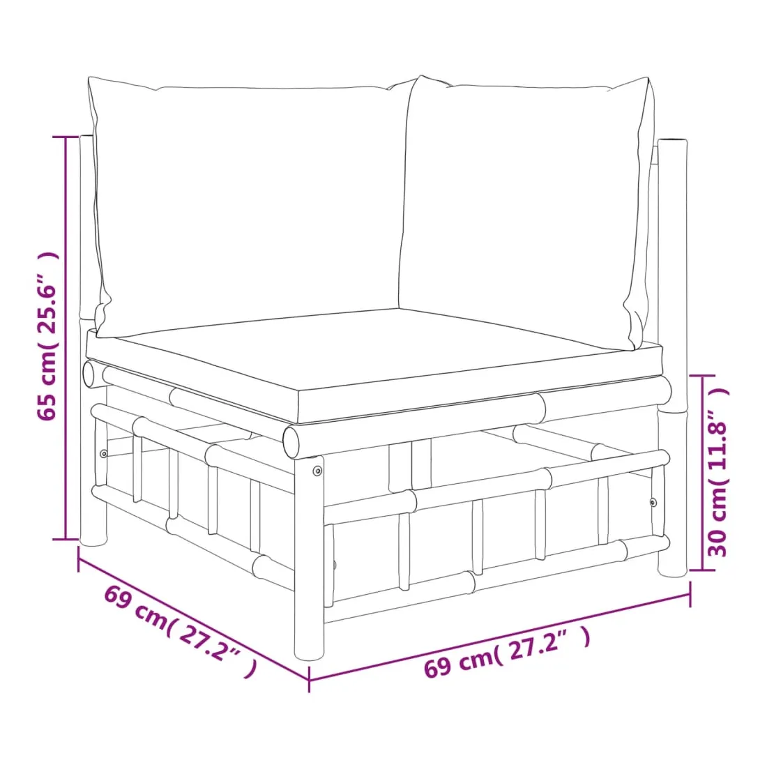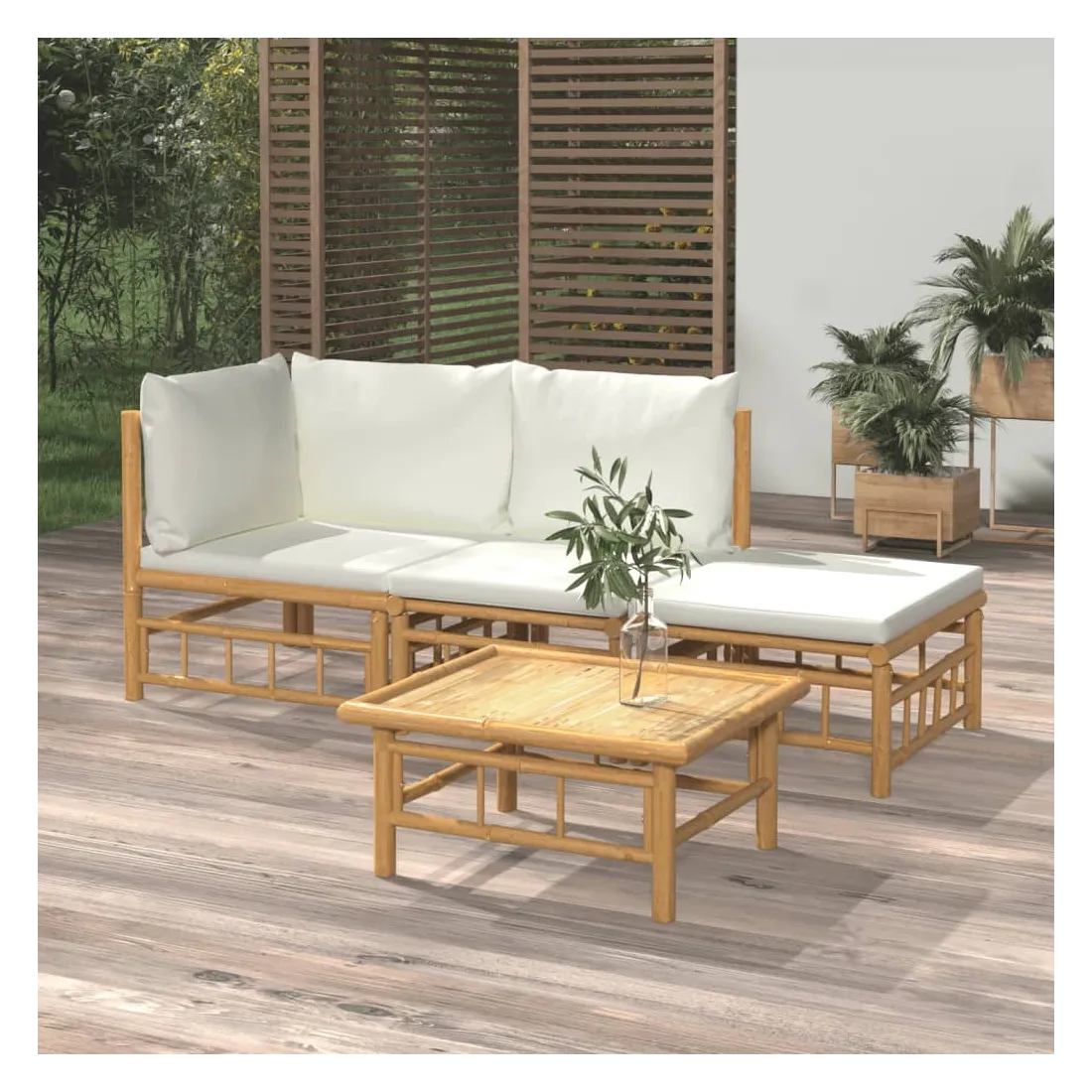 Savourez une tasse de café ou de thé par beau temps dans votre espace extérieur avec cet élégant ensemble de salon de jardin en bambou ! Matériau durable : le bambou est connu pour sa flexibilité et sa dureté. Les meubles en bambou sont une bonne option lorsque vous voulez des meubles d'extérieur solides fabriqués à partir de matériaux naturels.Expérience d'assise confortable : le dossier et l'accoudoir ajoutent un confort d'assise supplémentaire pour l'ensemble de canapé de jardin. De plus, les coussins d'assise et de dossier moelleux offrent un confort pendant votre temps d'assise.Table pratique : la table robuste est parfaite pour placer des repas, des boissons et d'autres objets décoratifs.Conception modulaire : l'ensemble de salon est flexible et facile à déplacer, vous pouvez donc le combiner avec d'autres segments modulaires dans la boutique en ligne pour créer vos propres configurations d'ensemble de salon d'extérieur ! Remarque :Pour que vos meubles d'extérieur restent beaux, nous vous recommandons de les protéger avec une housse imperméable.Bon à savoir :Pour faciliter au maximum le montage, chaque produit est livré avec des instructions.