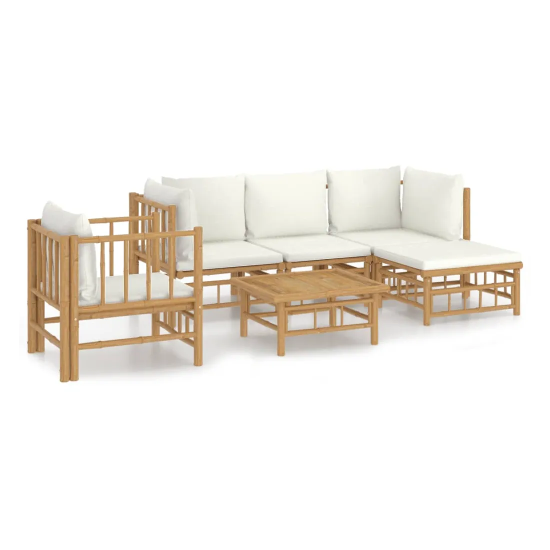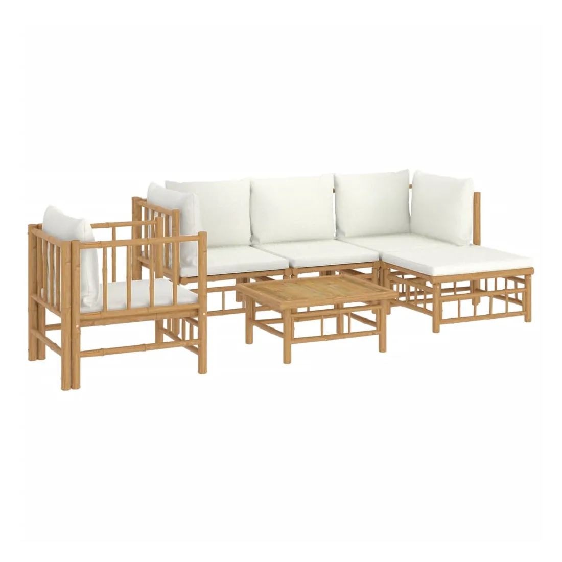 Savourez une tasse de café ou de thé par beau temps dans votre espace extérieur avec cet élégant ensemble de salon de jardin en bambou ! Matériau durable : le bambou est connu pour sa flexibilité et sa dureté. Les meubles en bambou sont une bonne option lorsque vous voulez des meubles d'extérieur solides fabriqués à partir de matériaux naturels.Expérience d'assise confortable : le dossier et l'accoudoir ajoutent un confort d'assise supplémentaire pour l'ensemble de canapé de jardin. De plus, les coussins d'assise et de dossier moelleux offrent un confort pendant votre temps d'assise.Table pratique : la table robuste est parfaite pour placer des repas, des boissons et d'autres objets décoratifs.Conception modulaire : l'ensemble de salon est flexible et facile à déplacer, vous pouvez donc le combiner avec d'autres segments modulaires dans la boutique en ligne pour créer vos propres configurations d'ensemble de salon d'extérieur ! Remarque :Pour que vos meubles d'extérieur restent beaux, nous vous recommandons de les protéger avec une housse imperméable.Bon à savoir :Pour faciliter au maximum le montage, chaque produit est livré avec des instructions.