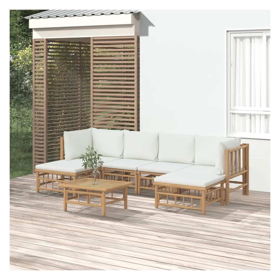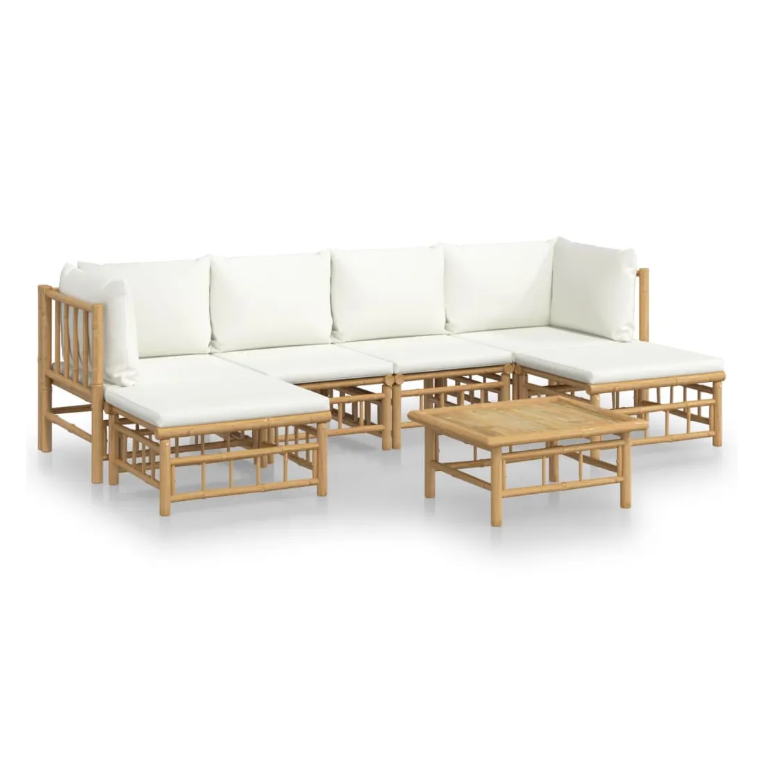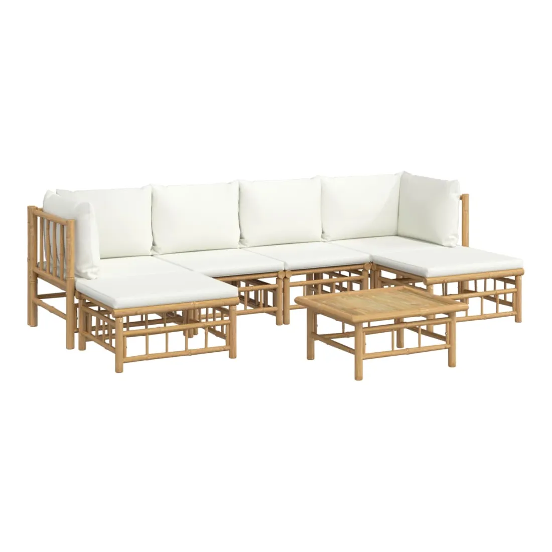 Savourez une tasse de café ou de thé par beau temps dans votre espace extérieur avec cet élégant ensemble de salon de jardin en bambou ! Matériau durable : le bambou est connu pour sa flexibilité et sa dureté. Les meubles en bambou sont une bonne option lorsque vous voulez des meubles d'extérieur solides fabriqués à partir de matériaux naturels.Expérience d'assise confortable : le dossier et l'accoudoir ajoutent un confort d'assise supplémentaire pour l'ensemble de canapé de jardin. De plus, les coussins d'assise et de dossier moelleux offrent un confort pendant votre temps d'assise.Table pratique : la table robuste est parfaite pour placer des repas, des boissons et d'autres objets décoratifs.Conception modulaire : l'ensemble de salon est flexible et facile à déplacer, vous pouvez donc le combiner avec d'autres segments modulaires dans la boutique en ligne pour créer vos propres configurations d'ensemble de salon d'extérieur ! Remarque :Pour que vos meubles d'extérieur restent beaux, nous vous recommandons de les protéger avec une housse imperméable.Bon à savoir :Pour faciliter au maximum le montage, chaque produit est livré avec des instructions.