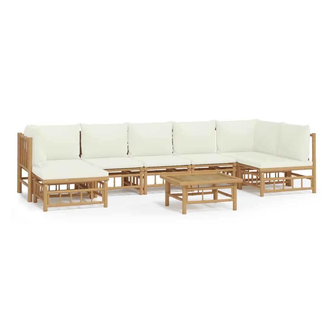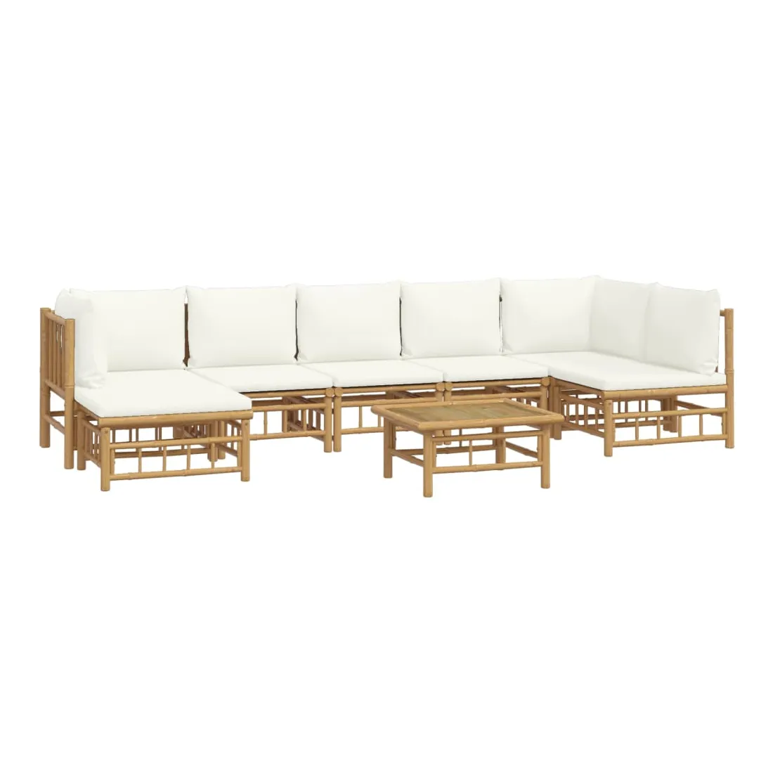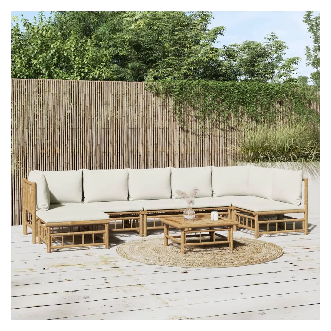 Salon de jardin 8 pcs avec coussins blanc crème bambou