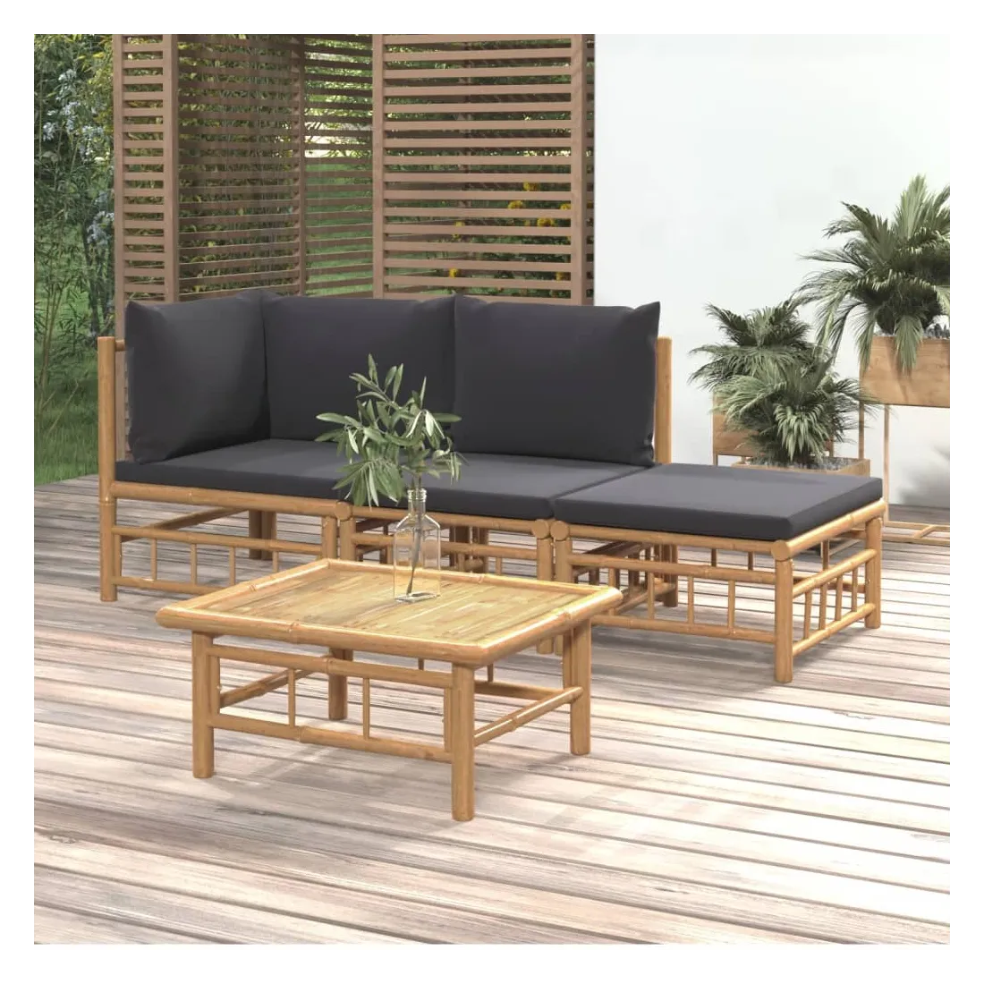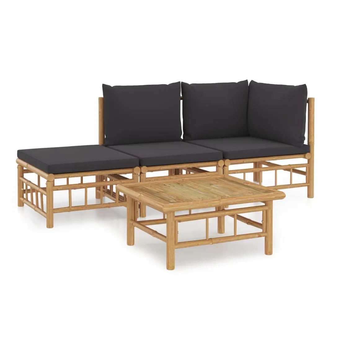 Salon de jardin 4 pcs avec coussins gris foncé bambou