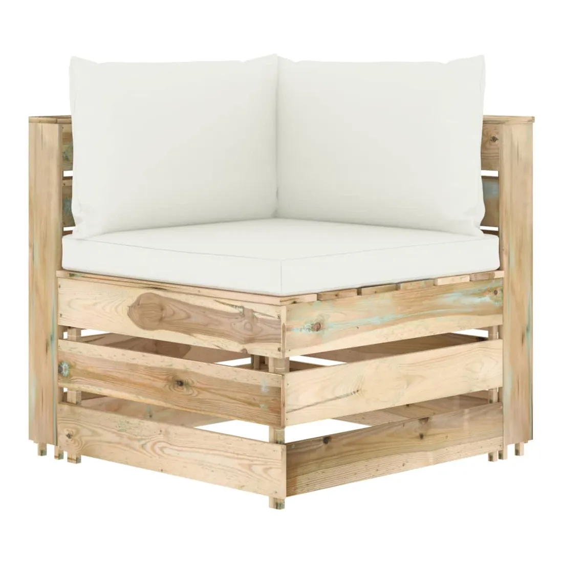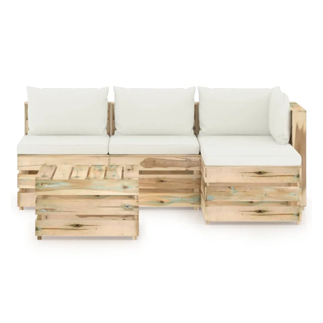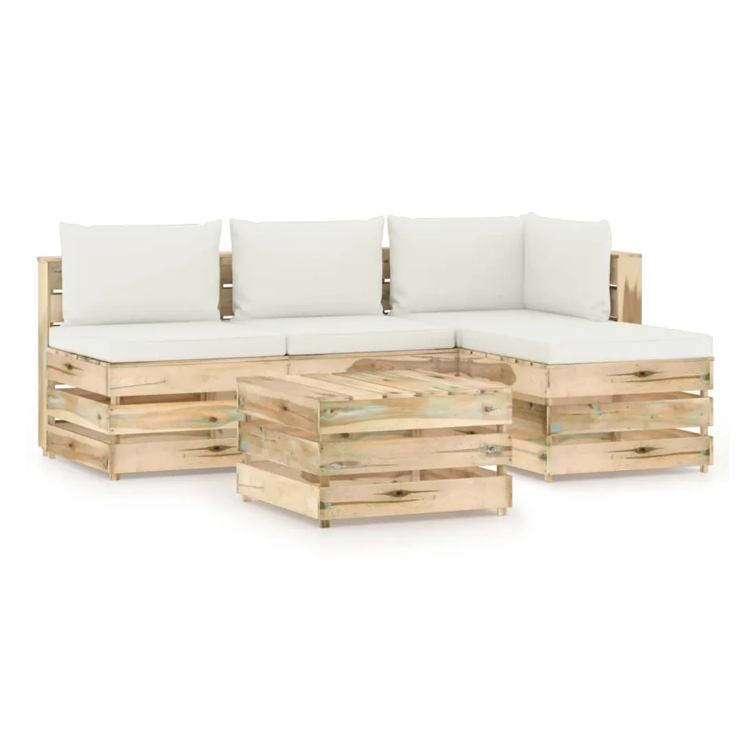 Salon de jardin 5 pcs avec coussins vert bois imprégné