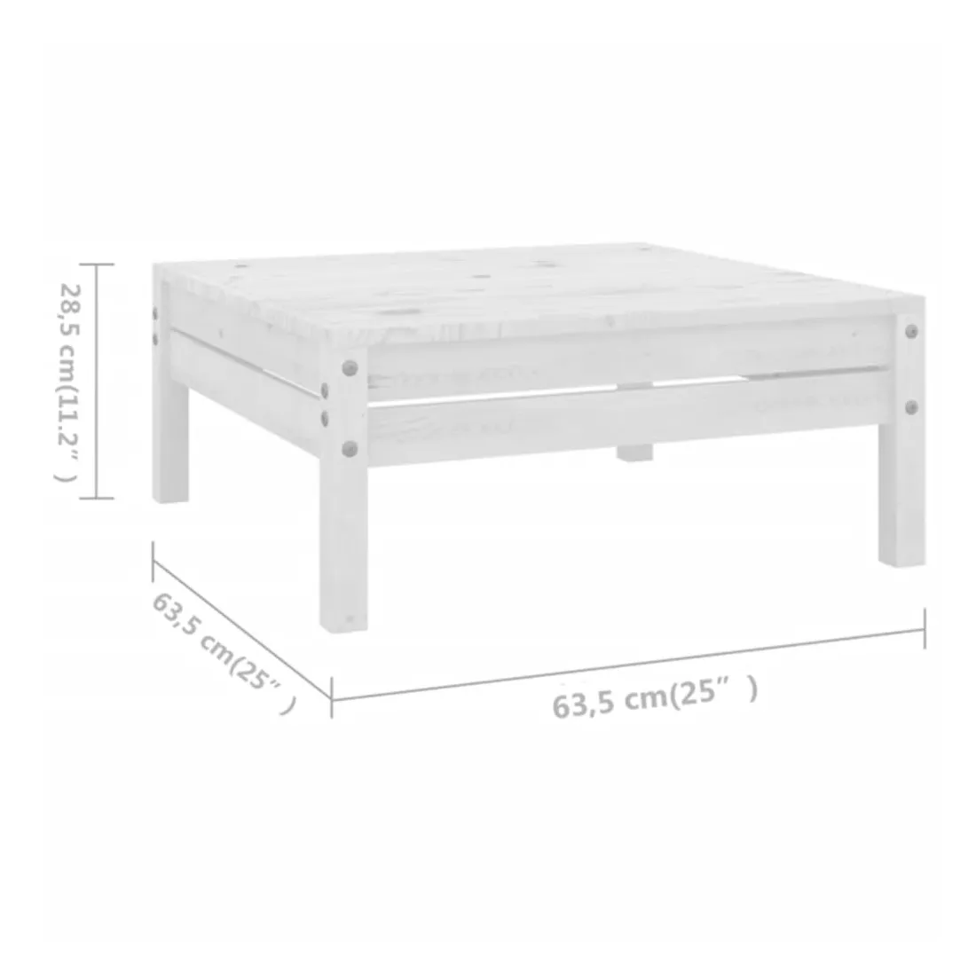 • Dimensions du repose-pied/de la table : 63,5 x 63,5 x 28,5 cm (L x l x H)