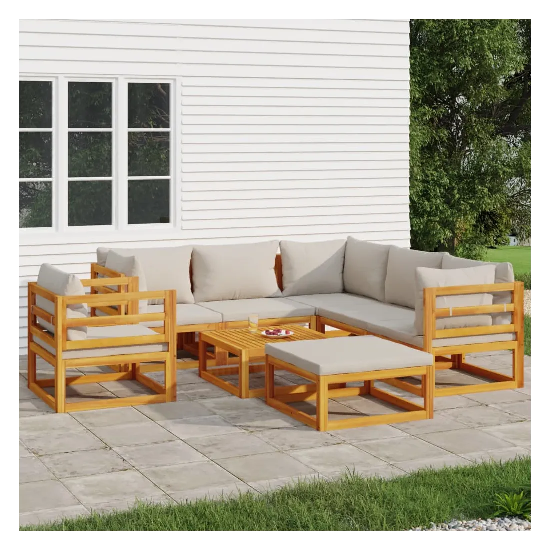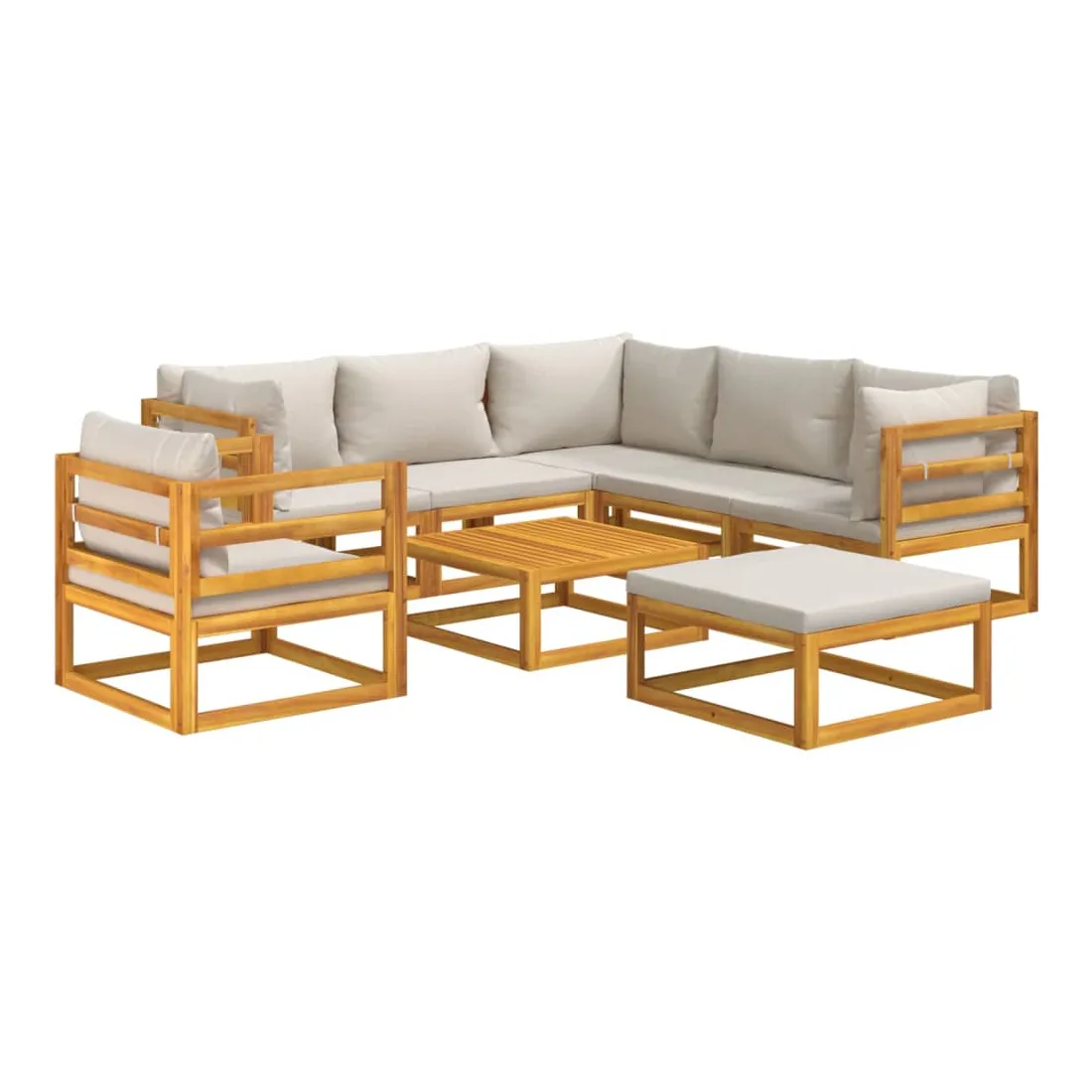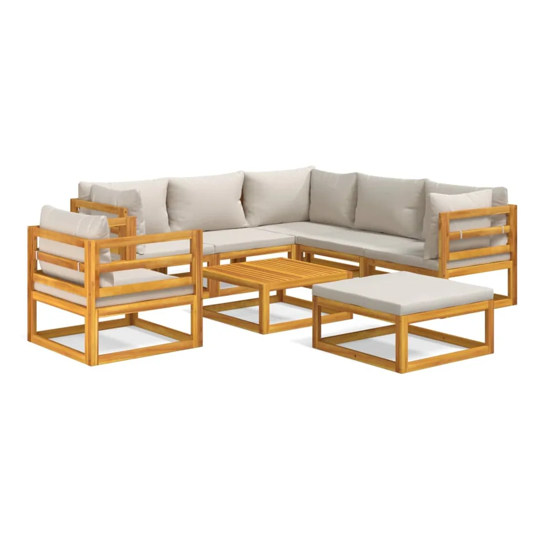 Savourez une tasse de café ou de thé par beau temps dans votre espace extérieur avec cet élégant ensemble de salon de jardin en bois ! Bois d'acacia massif : cet ensemble de meubles de jardin est en bois d'acacia massif. Le bois d'acacia solide est un beau matériau naturel. Le bois d'acacia est un bois dur tropical, qui est dense, robuste et durable.Expérience d'assise confortable : le dossier ajoute un confort d'assise supplémentaire au canapé. De plus, les coussins bien rembourrés offrent du confort pendant votre temps d'assise.Table pratique : la table robuste est parfaite pour placer des repas, des boissons et d'autres objets décoratifs.Design modulaire : le canapé de jardin est flexible et facile à déplacer, vous pouvez donc le combiner avec d'autres segments modulaires de la boutique en ligne pour créer vos propres configurations de salon de jardin ! Bon à savoir :Pour faciliter au maximum le montage, chaque produit est livré avec des instructions. Remarque :Pour que vos meubles d'extérieur restent beaux, nous vous recommandons de les protéger avec une housse imperméable.