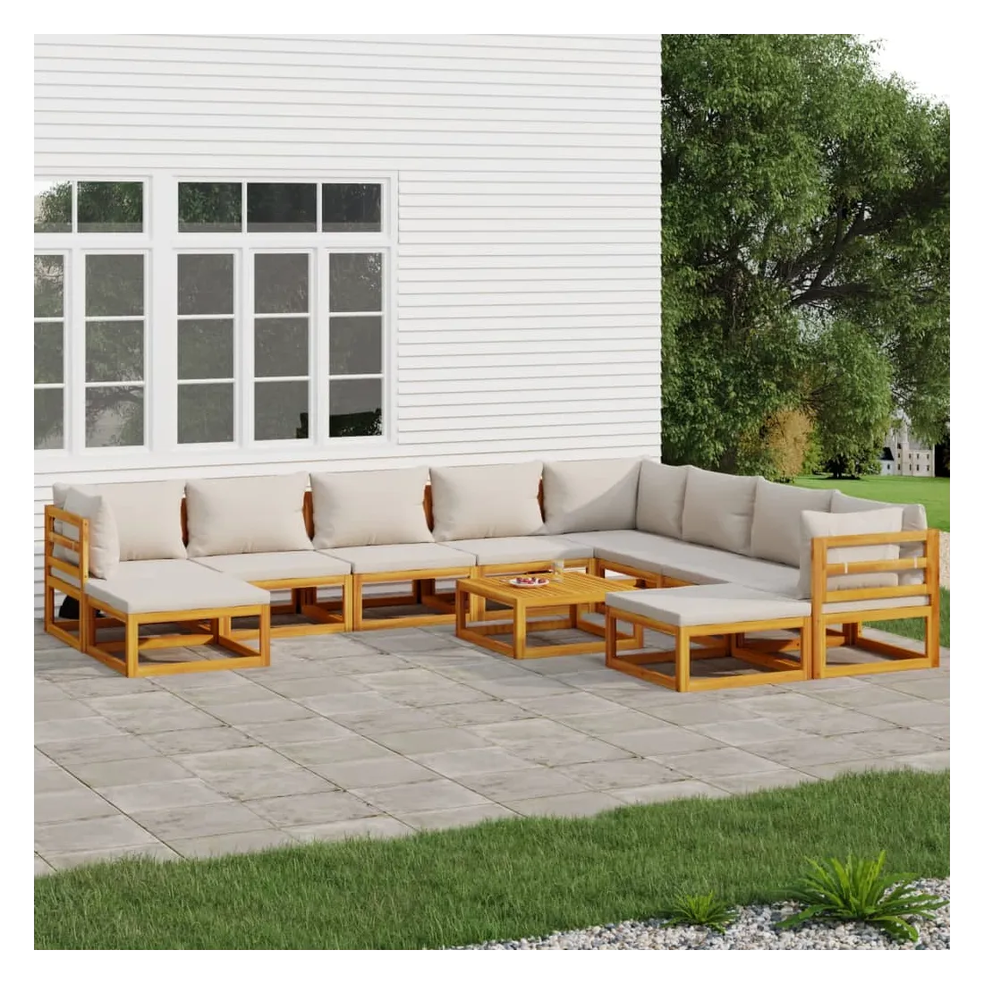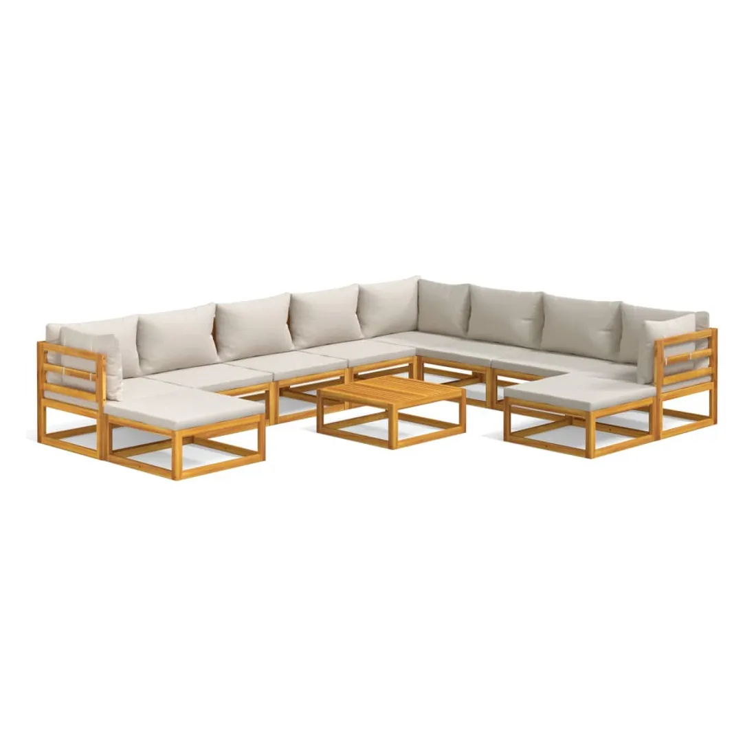 Savourez une tasse de café ou de thé par beau temps dans votre espace extérieur avec cet élégant ensemble de salon de jardin en bois ! Bois d'acacia massif : cet ensemble de meubles de jardin est en bois d'acacia massif. Le bois d'acacia solide est un beau matériau naturel. Le bois d'acacia est un bois dur tropical, qui est dense, robuste et durable.Expérience d'assise confortable : le dossier ajoute un confort d'assise supplémentaire au canapé. De plus, les coussins bien rembourrés offrent du confort pendant votre temps d'assise.Table pratique : la table robuste est parfaite pour placer des repas, des boissons et d'autres objets décoratifs.Design modulaire : le canapé de jardin est flexible et facile à déplacer, vous pouvez donc le combiner avec d'autres segments modulaires de la boutique en ligne pour créer vos propres configurations de salon de jardin ! Bon à savoir :Pour faciliter au maximum le montage, chaque produit est livré avec des instructions. Remarque :Pour que vos meubles d'extérieur restent beaux, nous vous recommandons de les protéger avec une housse imperméable.