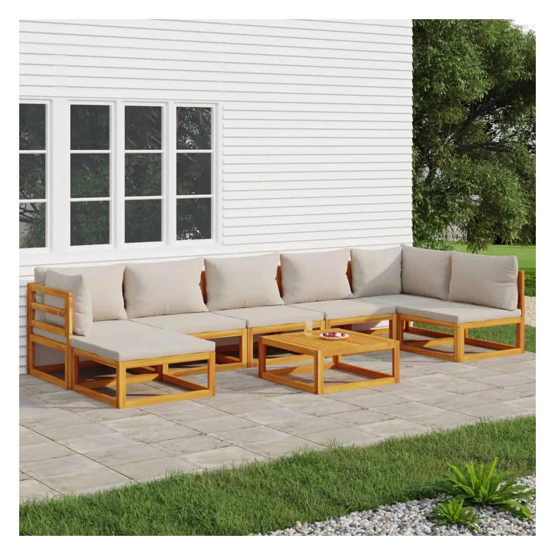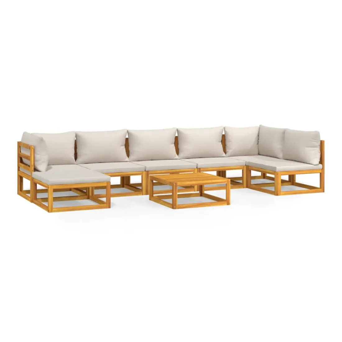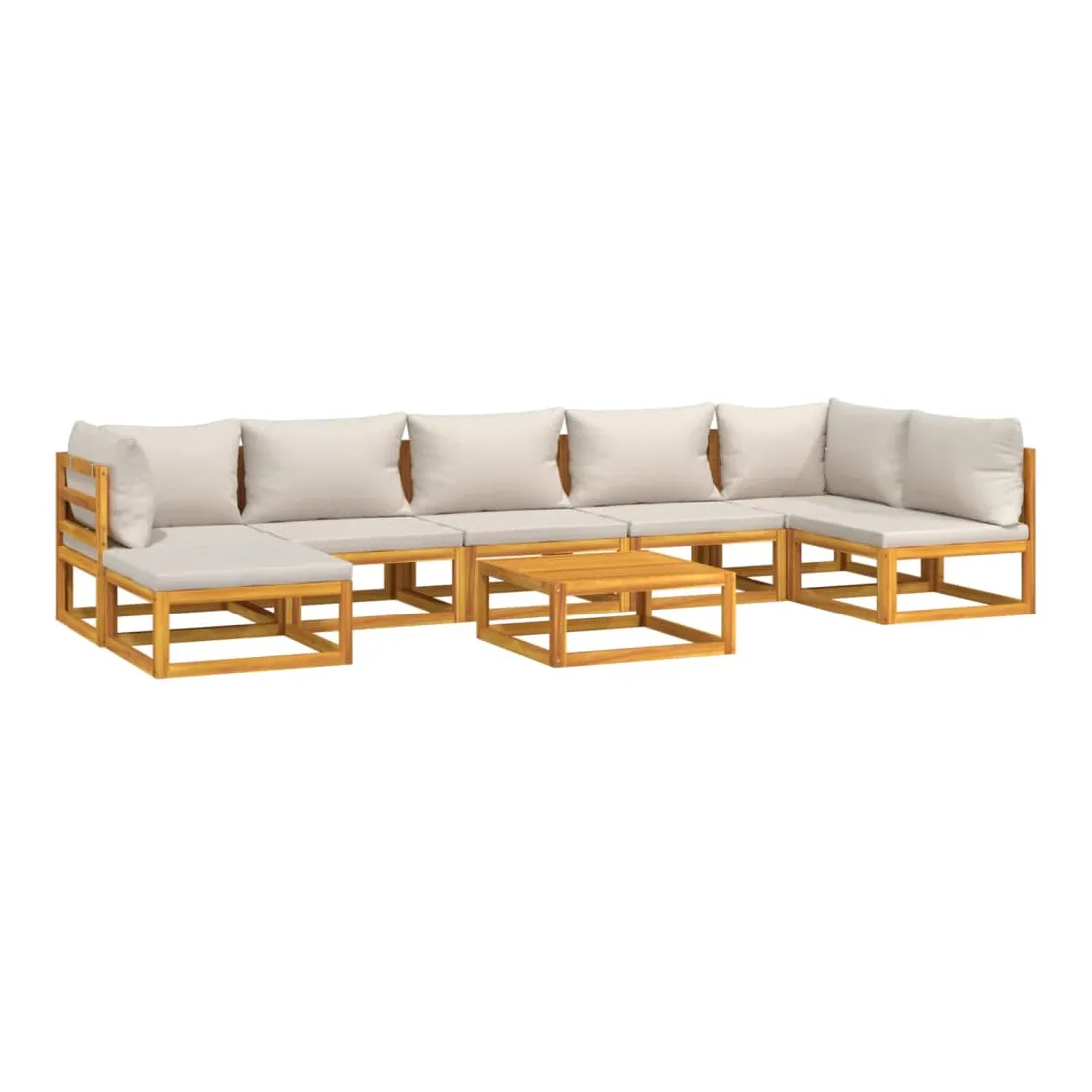 Savourez une tasse de café ou de thé par beau temps dans votre espace extérieur avec cet élégant ensemble de salon de jardin en bois ! Bois d'acacia massif : cet ensemble de meubles de jardin est en bois d'acacia massif. Le bois d'acacia solide est un beau matériau naturel. Le bois d'acacia est un bois dur tropical, qui est dense, robuste et durable.Expérience d'assise confortable : le dossier ajoute un confort d'assise supplémentaire au canapé. De plus, les coussins bien rembourrés offrent du confort pendant votre temps d'assise.Table pratique : la table robuste est parfaite pour placer des repas, des boissons et d'autres objets décoratifs.Design modulaire : le canapé de jardin est flexible et facile à déplacer, vous pouvez donc le combiner avec d'autres segments modulaires de la boutique en ligne pour créer vos propres configurations de salon de jardin ! Bon à savoir :Pour faciliter au maximum le montage, chaque produit est livré avec des instructions. Remarque :Pour que vos meubles d'extérieur restent beaux, nous vous recommandons de les protéger avec une housse imperméable.