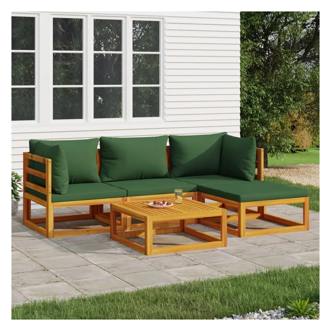 Savourez une tasse de café ou de thé par beau temps dans votre espace extérieur avec cet élégant ensemble de salon de jardin en bois ! Bois d'acacia massif : cet ensemble de meubles de jardin est en bois d'acacia massif. Le bois d'acacia solide est un beau matériau naturel. Le bois d'acacia est un bois dur tropical, qui est dense, robuste et durable.Expérience d'assise confortable : le dossier ajoute un confort d'assise supplémentaire au canapé. De plus, les coussins bien rembourrés offrent du confort pendant votre temps d'assise.Table pratique : la table robuste est parfaite pour placer des repas, des boissons et d'autres objets décoratifs.Design modulaire : le canapé de jardin est flexible et facile à déplacer, vous pouvez donc le combiner avec d'autres segments modulaires de la boutique en ligne pour créer vos propres configurations de salon de jardin ! Bon à savoir :Pour faciliter au maximum le montage, chaque produit est livré avec des instructions. Remarque :Pour que vos meubles d'extérieur restent beaux, nous vous recommandons de les protéger avec une housse imperméable.