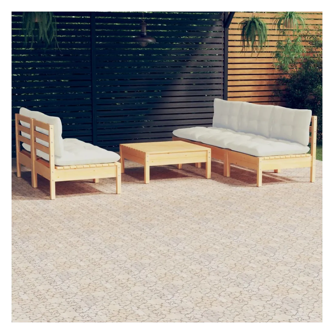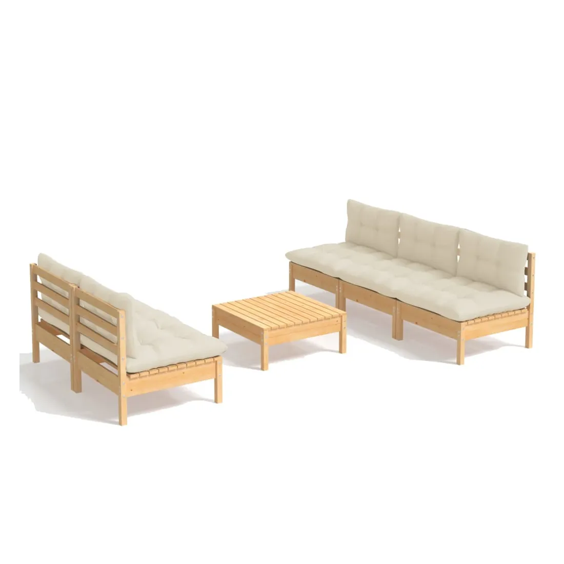 Salon de jardin 6 pcs avec coussins crème bois de pin
