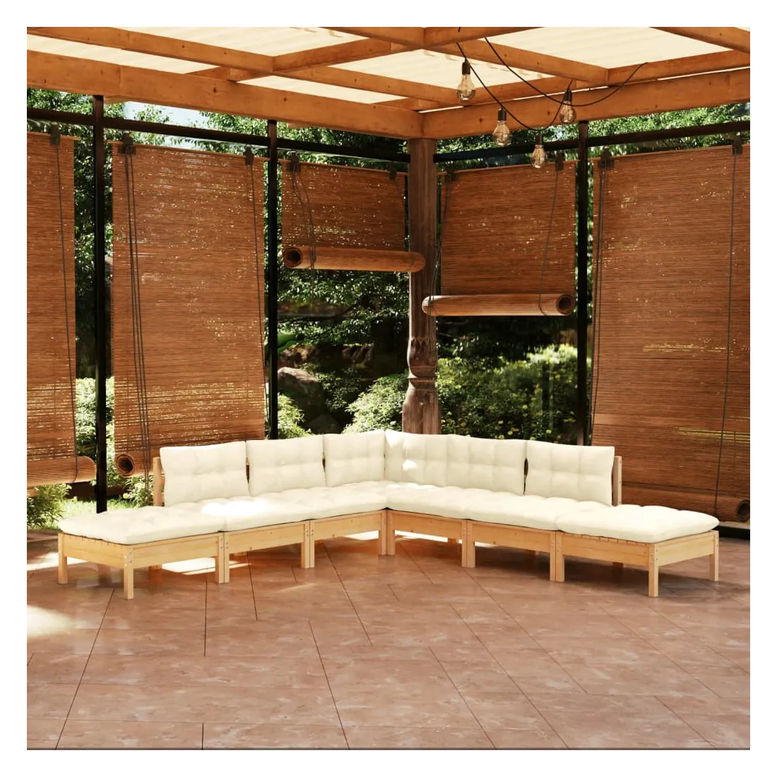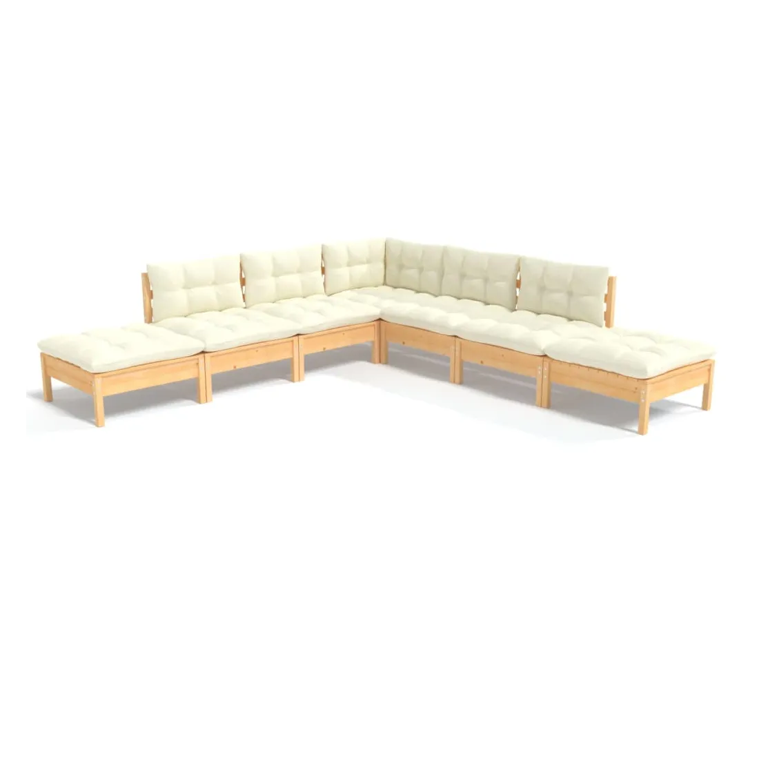 Cet ensemble de salon de jardin en bois est un choix excellent pour vous détendre et profiter du bon temps, faire une sieste ou discuter avec votre famille ou vos amis. Le salon de patio est fabriqué en bois de pin massif, ce qui le rend robuste et stable. Les coussins ajoutent un confort supplémentaire. Vous pouvez le combiner avec d’autres segments modulaires pour créer vos propres configurations de salon de jardin ! Remarque : afin de prolonger la durée de vie des meubles d'extérieur, nous vous recommandons de les protéger avec une housse imperméable.