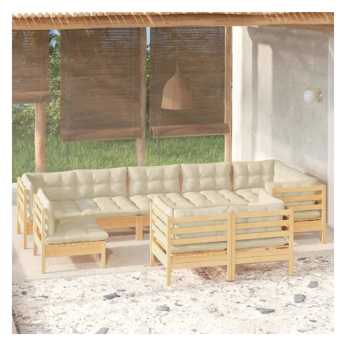 Ce salon de jardin est un excellent choix pour vous détendre et profiter du beau temps, faire une sieste ou discuter avec votre famille ou vos amis. Le salon de patio est fabriqué en bois de pin massif, ce qui le rend robuste et stable. Les coussins ajoutent un confort supplémentaire. Vous pouvez le combiner avec d’autres segments modulaires pour créer vos propres configurations de salon de jardin ! Remarque : afin de prolonger la durée de vie des meubles d'extérieur, nous vous recommandons de les protéger avec une housse imperméable.