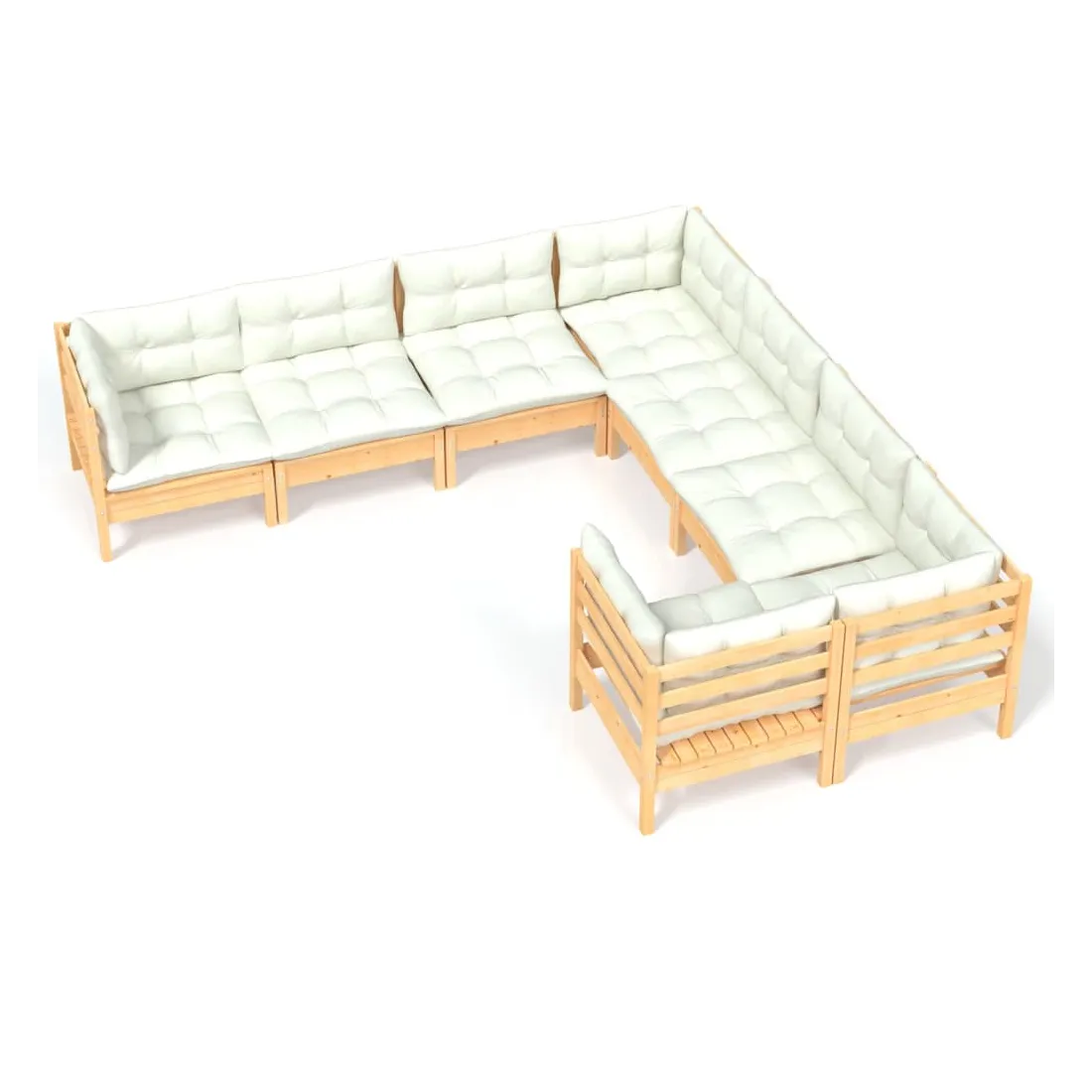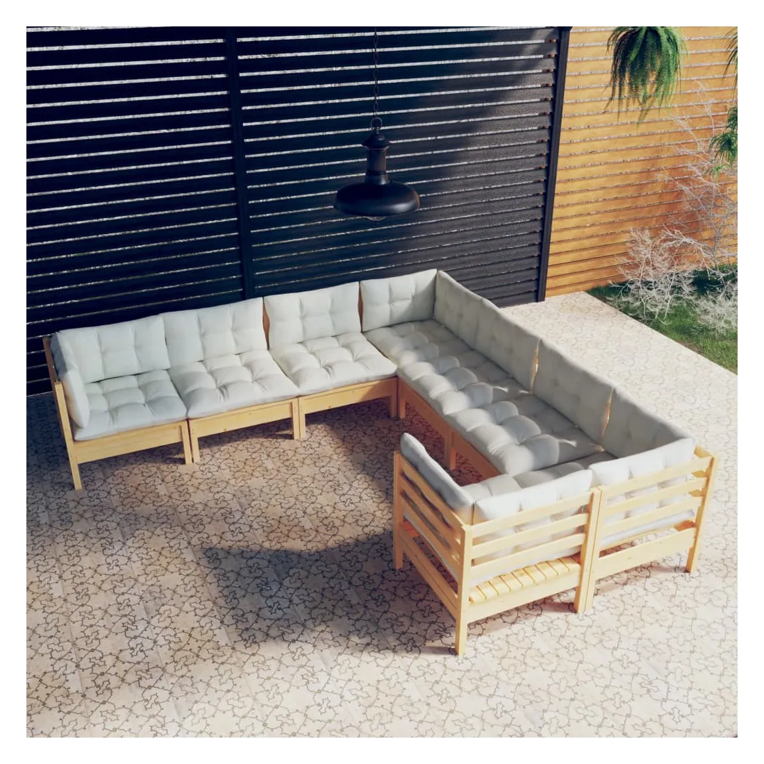 Ce salon de jardin est un excellent choix pour vous détendre et profiter du beau temps, faire une sieste ou discuter avec votre famille ou vos amis. Le salon de patio est fabriqué en bois de pin massif, ce qui le rend robuste et stable. Les coussins ajoutent un confort supplémentaire. Vous pouvez le combiner avec d’autres segments modulaires pour créer vos propres configurations de salon de jardin ! Remarque : afin de prolonger la durée de vie des meubles d'extérieur, nous vous recommandons de les protéger avec une housse imperméable.