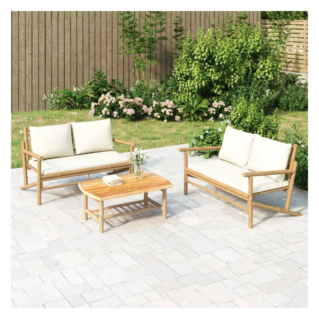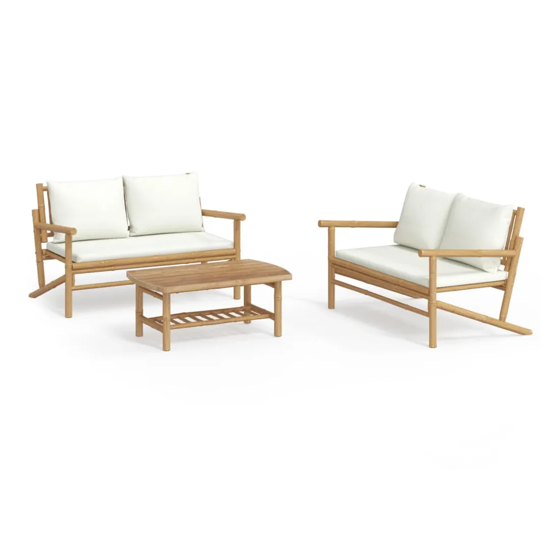 Savourez une tasse de café ou de thé par beau temps dans votre espace extérieur avec cet ensemble de salon de jardin rustique en bambou ! Ensemble en bambou : le bambou est connu pour sa flexibilité et sa dureté. Les meubles en bambou sont une bonne option si l'on veut des meubles d'extérieur robustes fabriqués à partir de matériaux naturels.Expérience d'assise confortable : le dossier et les accoudoirs ajoutent un confort d'assise supplémentaire pour l'ensemble de canapé de jardin. De plus, les coussins d'assise et de dossier moelleux offrent un confort pendant votre temps d'assise.Table pratique : la table robuste est parfaite pour placer des repas, des boissons et d'autres objets décoratifs.Conception modulaire : l'ensemble de salon est flexible et facile à déplacer, vous pouvez donc le combiner avec d'autres segments modulaires dans la boutique en ligne pour créer vos propres configurations d'ensemble de salon d'extérieur ! Remarque :Pour que vos meubles d'extérieur restent beaux, nous vous recommandons de les protéger avec une housse imperméable.