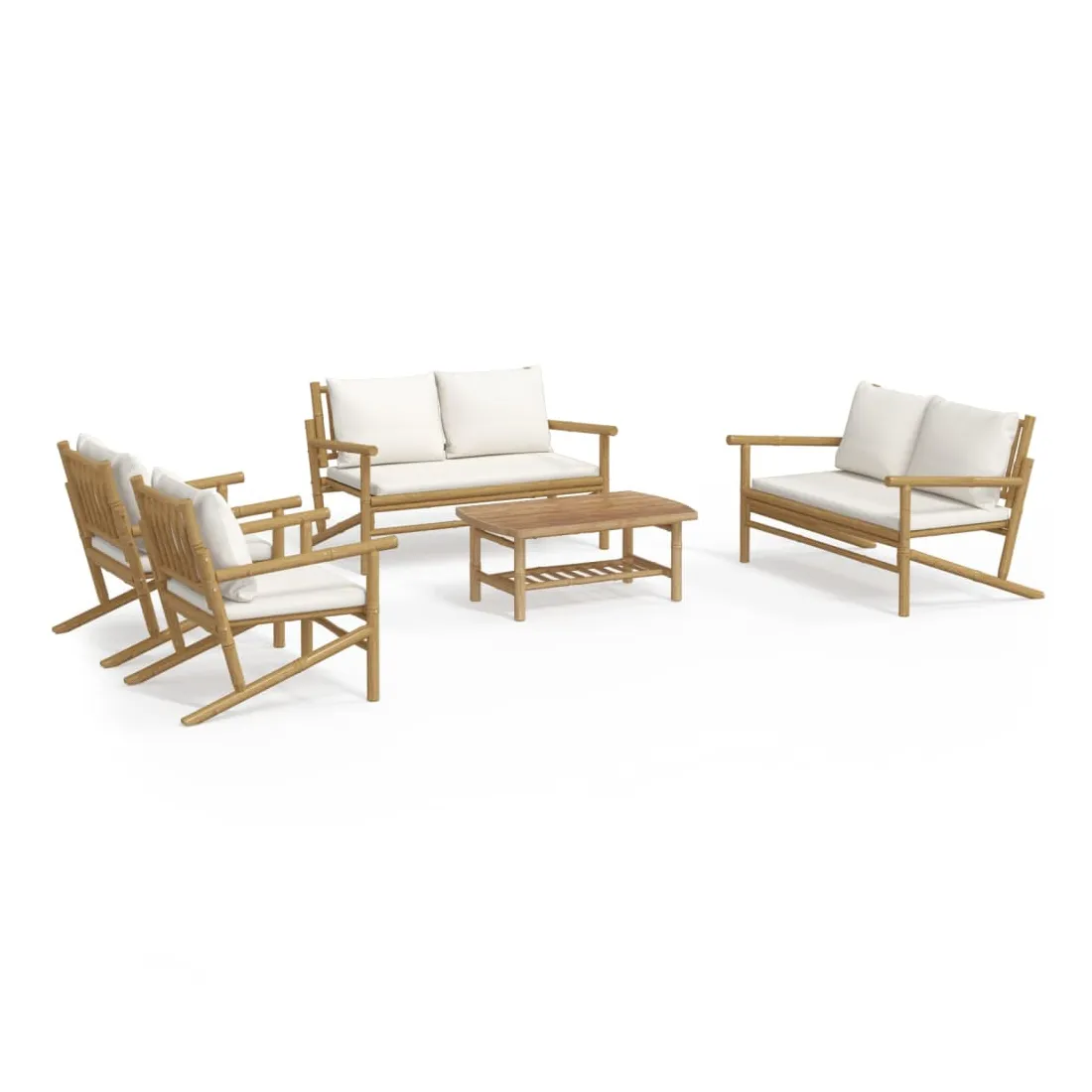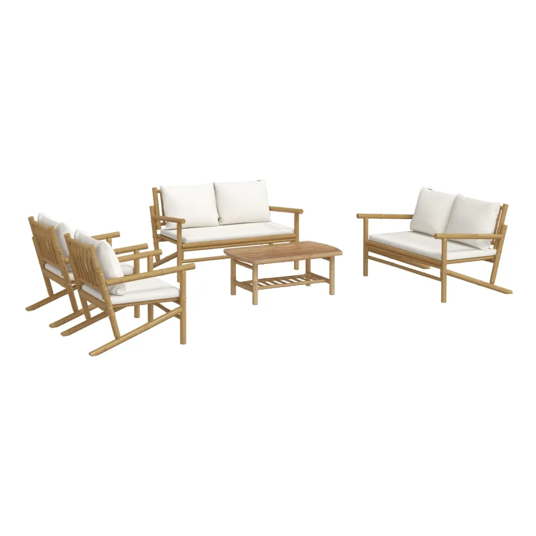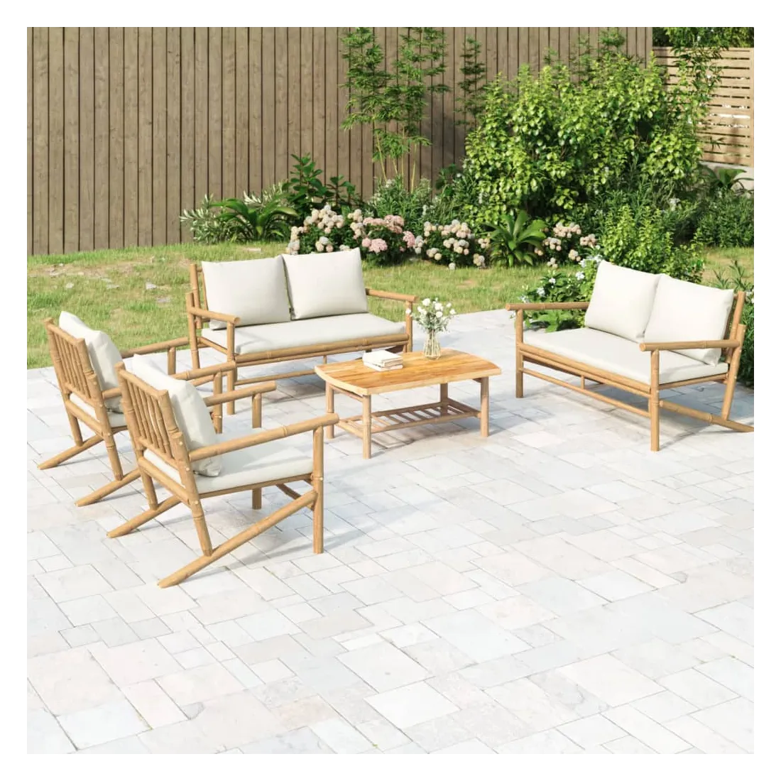 Savourez une tasse de café ou de thé par beau temps dans votre espace extérieur avec cet ensemble de salon de jardin rustique en bambou ! Ensemble en bambou : le bambou est connu pour sa flexibilité et sa dureté. Les meubles en bambou sont une bonne option si l'on veut des meubles d'extérieur robustes fabriqués à partir de matériaux naturels.Expérience d'assise confortable : le dossier et les accoudoirs ajoutent un confort d'assise supplémentaire pour l'ensemble de canapé de jardin. De plus, les coussins d'assise et de dossier moelleux offrent un confort pendant votre temps d'assise.Table pratique : la table robuste est parfaite pour placer des repas, des boissons et d'autres objets décoratifs.Conception modulaire : l'ensemble de salon est flexible et facile à déplacer, vous pouvez donc le combiner avec d'autres segments modulaires dans la boutique en ligne pour créer vos propres configurations d'ensemble de salon d'extérieur ! Remarque :Pour que vos meubles d'extérieur restent beaux, nous vous recommandons de les protéger avec une housse imperméable.