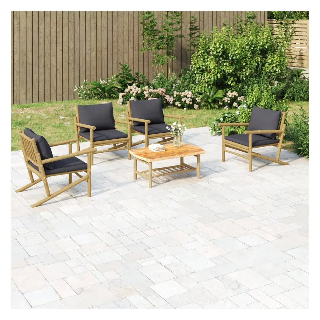 Savourez une tasse de café ou de thé par beau temps dans votre espace extérieur avec cet ensemble de salon de jardin rustique en bambou ! Ensemble en bambou : le bambou est connu pour sa flexibilité et sa dureté. Les meubles en bambou sont une bonne option si l'on veut des meubles d'extérieur robustes fabriqués à partir de matériaux naturels.Expérience d'assise confortable : le dossier et les accoudoirs ajoutent un confort d'assise supplémentaire pour l'ensemble de canapé de jardin. De plus, les coussins d'assise et de dossier moelleux offrent un confort pendant votre temps d'assise.Table pratique : la table robuste est parfaite pour placer des repas, des boissons et d'autres objets décoratifs.Conception modulaire : l'ensemble de salon est flexible et facile à déplacer, vous pouvez donc le combiner avec d'autres segments modulaires dans la boutique en ligne pour créer vos propres configurations d'ensemble de salon d'extérieur ! Remarque :Pour que vos meubles d'extérieur restent beaux, nous vous recommandons de les protéger avec une housse imperméable.