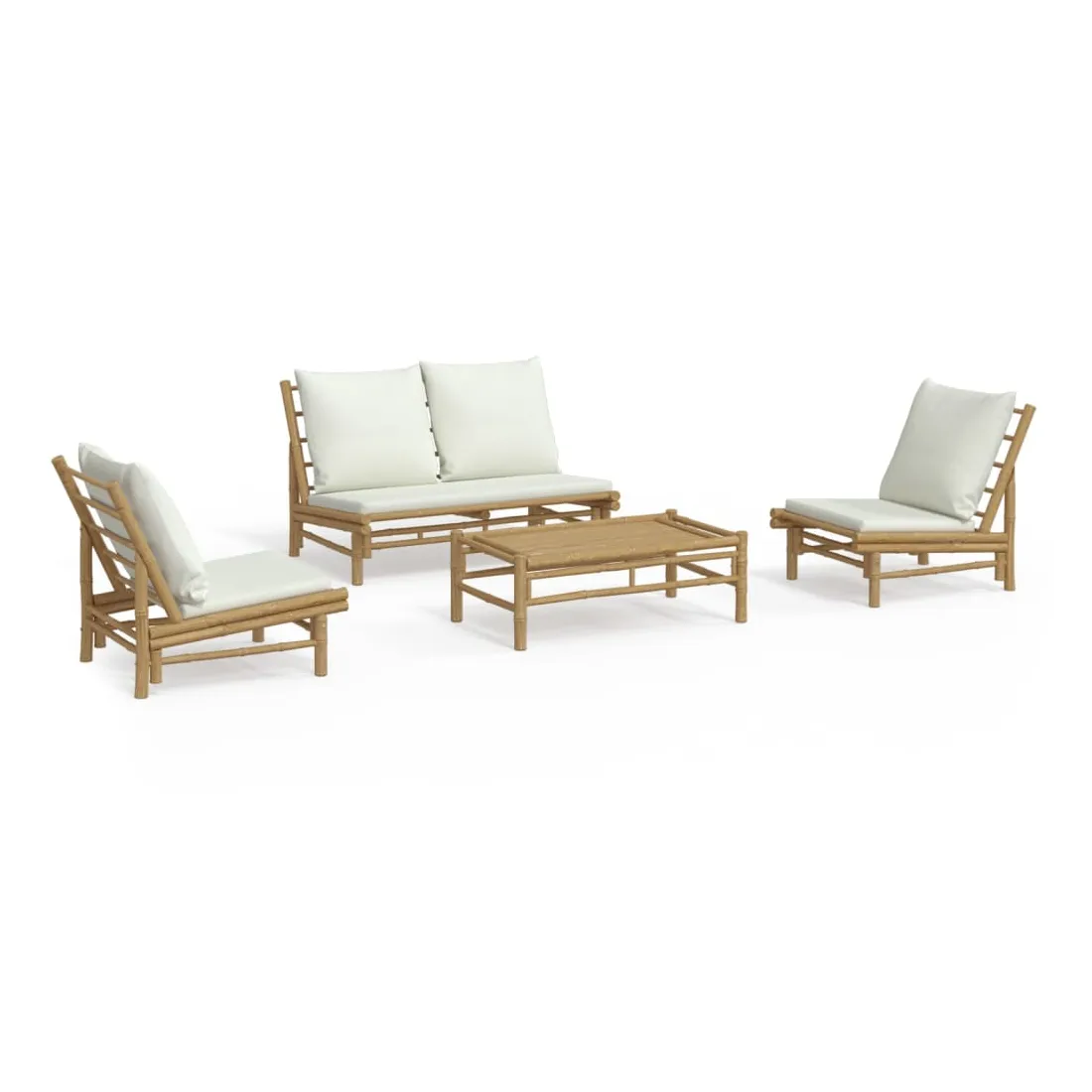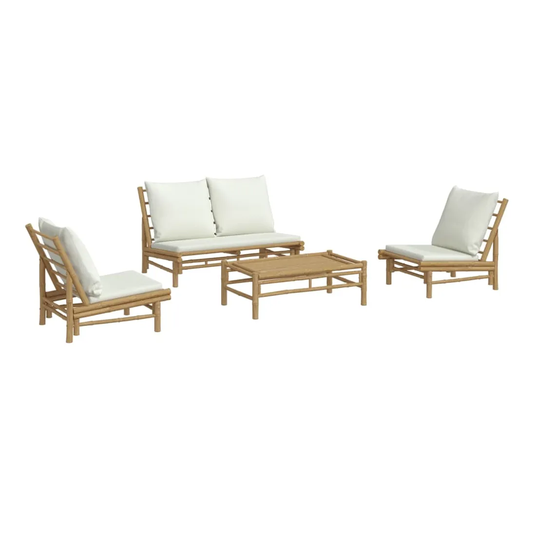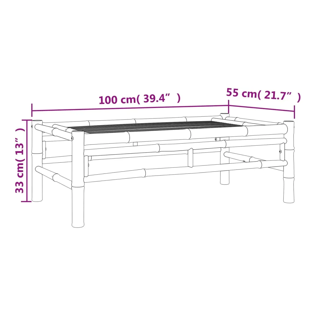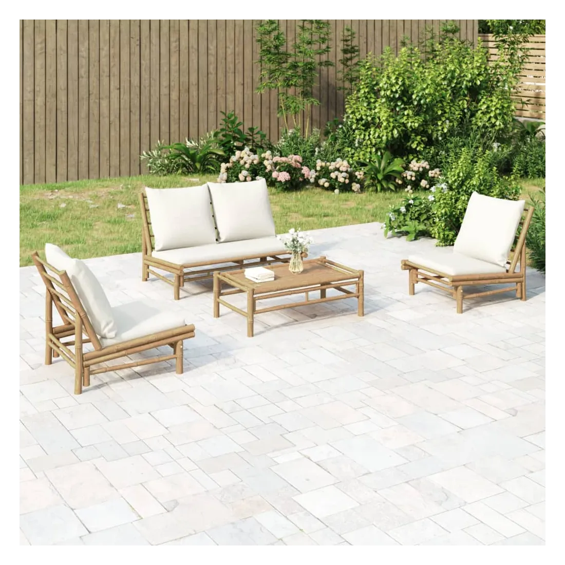 Savourez une tasse de café ou de thé par beau temps dans votre espace extérieur avec cet ensemble de salon de jardin rustique en bambou ! Ensemble en bambou : le bambou est connu pour sa flexibilité et sa dureté. Les meubles en bambou sont une bonne option si l'on veut des meubles d'extérieur robustes fabriqués à partir de matériaux naturels.Expérience d'assise confortable : le dossier ajoute un confort d'assise supplémentaire pour l'ensemble de canapé de jardin. De plus, les coussins d'assise et de dossier moelleux offrent un confort pendant votre temps d'assise.Table pratique : la table robuste est parfaite pour placer des repas, des boissons et d'autres objets décoratifs.Conception modulaire : l'ensemble de salon est flexible et facile à déplacer, vous pouvez donc le combiner avec d'autres segments modulaires dans la boutique en ligne pour créer vos propres configurations d'ensemble de salon d'extérieur ! Remarque :Pour que vos meubles d'extérieur restent beaux, nous vous recommandons de les protéger avec une housse imperméable.