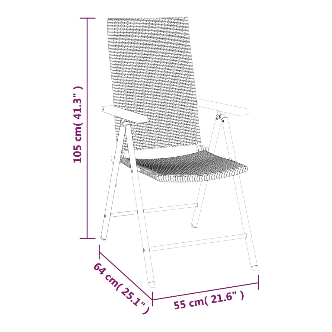 vidaXLCréez une esthétique convaincante et uniforme dans votre espace extérieur avec cet ensemble de salle à manger de jardin ! Matériau résistant aux intempéries : la résine tressée, également connue sous le nom de rotin poly, résiste aux intempéries et est facile à nettoyer. Elle reste belle à l'extérieur pendant une longue période. Elle offre une excellente qualité, commodité et un aspect esthétique.Cadre robuste : les cadres en acier enduit de poudre rendent l'ensemble de salle à manger d'extérieur robuste et stable pour une utilisation quotidienne à l'extérieur.Dessus de table pratique : le dessus lisse de la table de salle à manger est en verre trempé, facile à nettoyer avec un chiffon humide. De plus, le dessus robuste est parfait pour placer des repas, des boissons et d'autres objets décoratifs.Design inclinable et pliable : les dossiers des chaises disposent de 7 réglages d'inclinaison, de sorte que vous puissiez toujours trouver la position assise la plus confortable. De plus, les chaises de jardin peuvent être pliées pour économiser de l'espace lorsqu'elles ne sont pas utilisées. Remarque :Afin de prolonger la durée de vie de votre mobilier d'extérieur, nous vous recommandons de le protéger avec une housse imperméable.Chaque produit est livré avec un manuel de montage dans la boîte pour un montage facile.