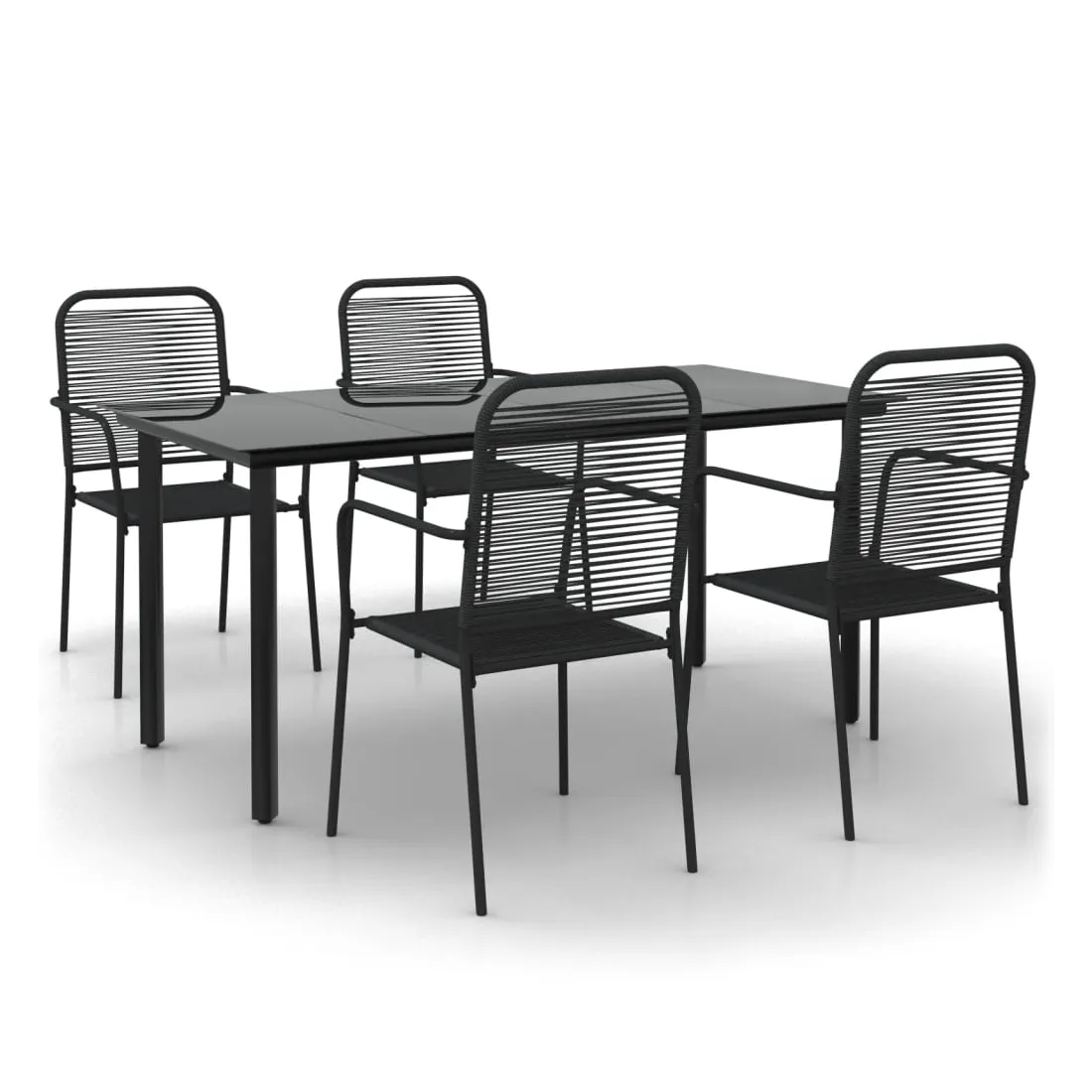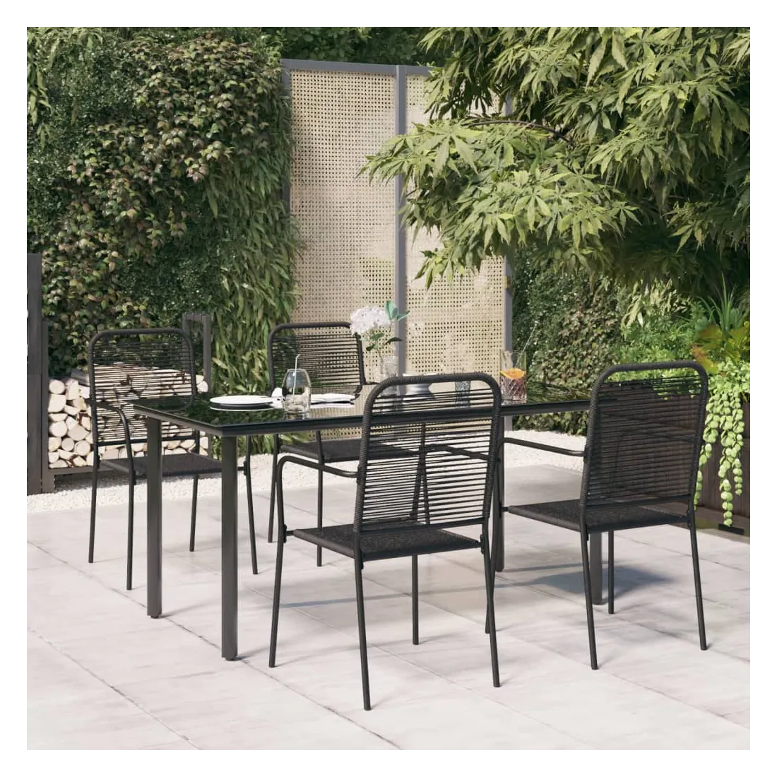Cet ensemble de salle à manger de jardin tendance au design élégant et aux lignes épurées est un excellent choix pour votre jardin, patio, terrasse, cuisine et même salles à manger. Matériau durable : le dossier et le siège sont fabriqués en corde de coton double, doux au toucher et robuste pour une utilisation à long terme.Cadre robuste : les cadres en acier enduit de poudre rendent l'ensemble de salle à manger d'extérieur robuste et stable pour une utilisation quotidienne à l'extérieur.Dessus de table pratique : le dessus lisse de la table de salle à manger est en verre trempé, facile à nettoyer avec un chiffon humide. De plus, le dessus robuste est parfait pour placer des repas, des boissons et d'autres objets décoratifs.Design flexible : grâce à leur construction légère, ces chaises de jardin sont faciles à déplacer et peuvent être empilées pour économiser de l'espace lorsqu'elles ne sont pas utilisées. Remarque :Afin de prolonger la durée de vie de votre mobilier d'extérieur, nous vous recommandons de le protéger avec une housse imperméable.Chaque produit est livré avec un manuel de montage dans la boîte pour un montage facile.