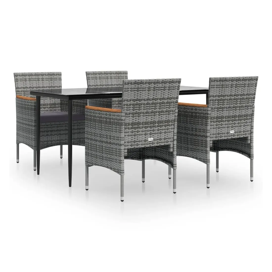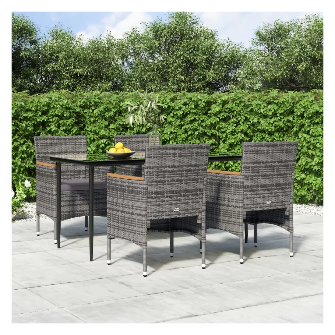 Cet ensemble de salle à manger de jardin, au design élégant et contemporain, est un excellent choix pour manger ou se détendre dans le jardin. Matériau résistant aux intempéries : fabriqué en résine tressée résistante aux intempéries et à l'eau, cet ensemble de salle à manger de jardin est facile à nettoyer, résistant à l'usure et adapté à un usage quotidien.Cadre robuste : les cadres en acier enduit de poudre rendent l'ensemble de salle à manger d'extérieur robuste et stable pour une utilisation quotidienne à l'extérieur.Dessus de table pratique : le dessus lisse de la table de salle à manger est en verre trempé, facile à nettoyer avec un chiffon humide. De plus, le dessus robuste est parfait pour placer des repas, des boissons et d'autres objets décoratifs.Design confortable : conçues avec des dossiers et des accoudoirs incurvés, ces chaises d'extérieur offrent un maximum de confort.Confort supplémentaire : les coussins bien rembourrés offrent un confort ultime pendant votre temps d'assise. Remarque :Afin de prolonger la durée de vie de votre mobilier d'extérieur, nous vous recommandons de le protéger avec une housse imperméable.Chaque produit est livré avec un manuel de montage dans la boîte pour un montage facile.