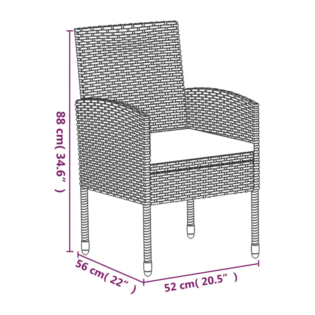 - Dimensions de la chaise : 52 x 56 x 88 cm (l x P x H)