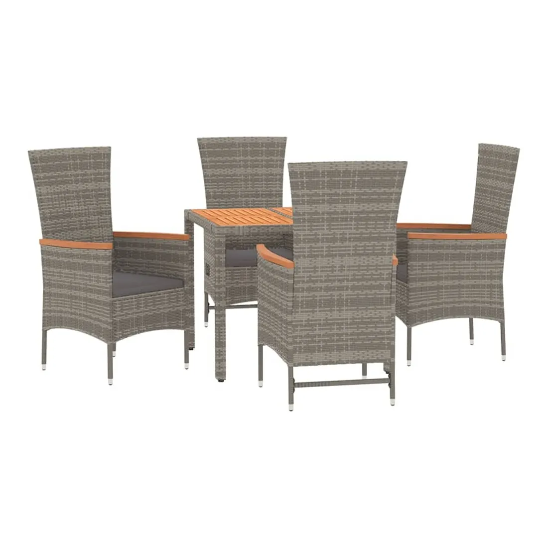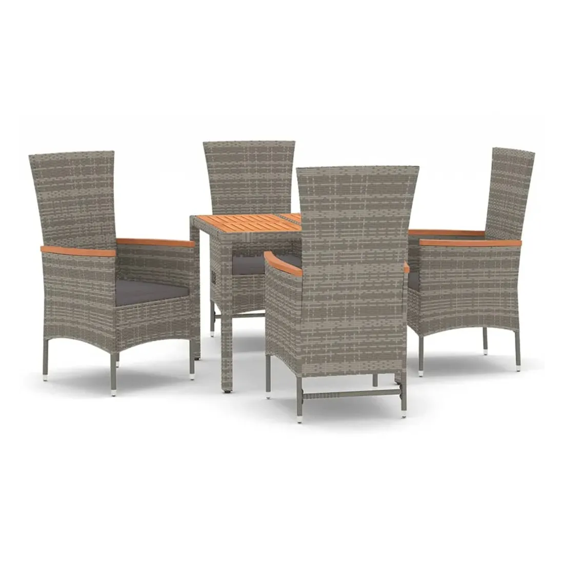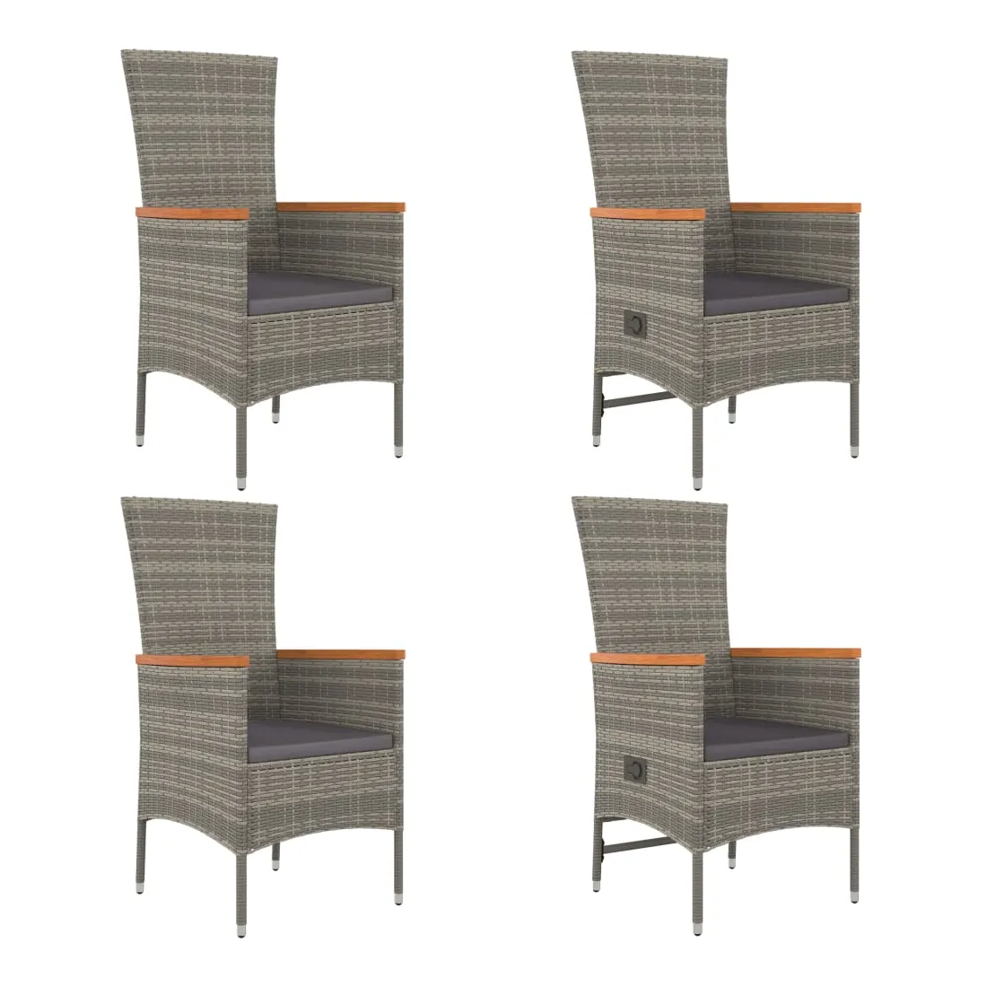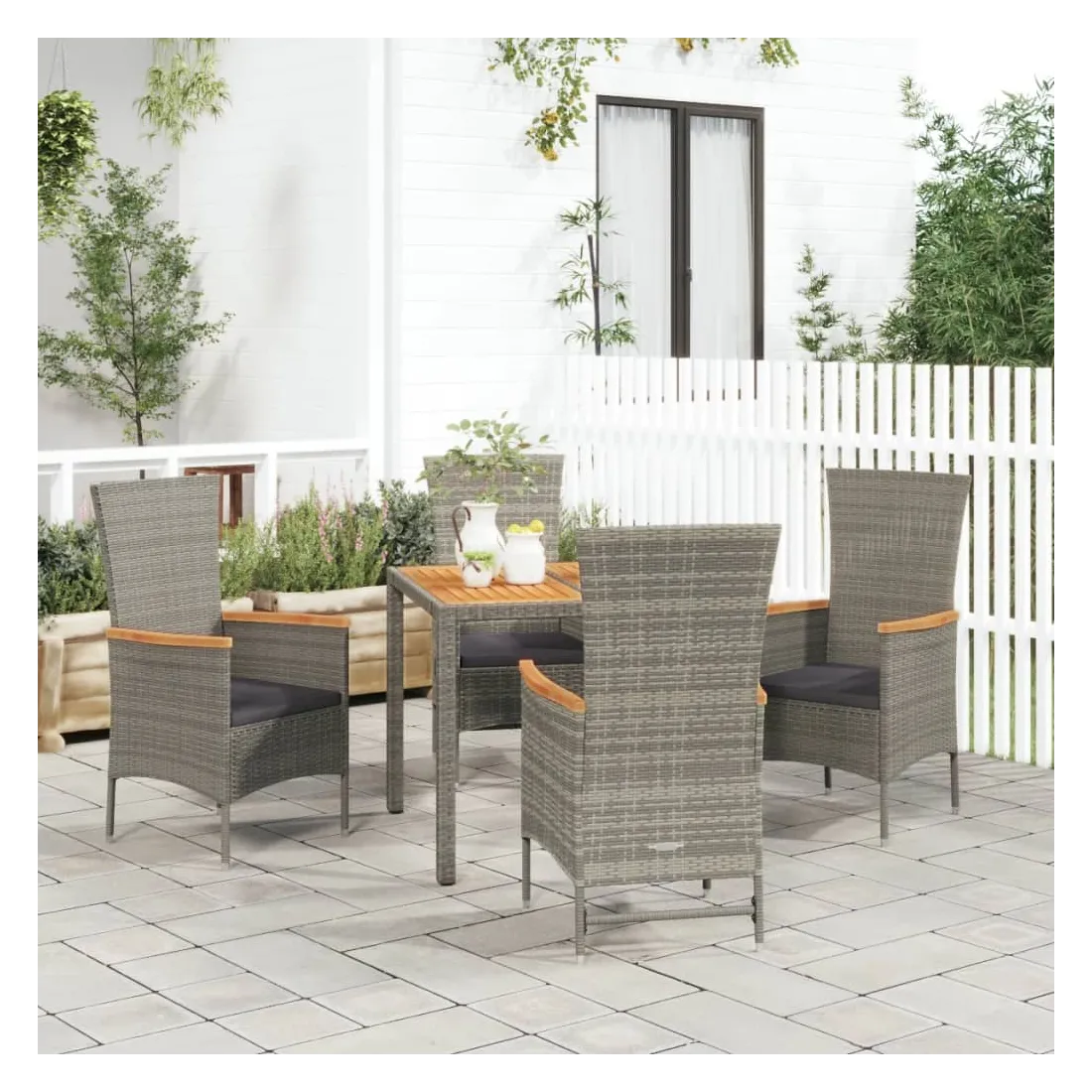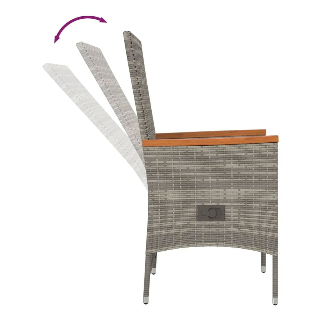Cet ensemble de salle à manger de jardin tendance, au design élégant et contemporain, est un excellent choix pour manger ou vous détendre dans votre jardin. Matériau résistant aux intempéries : la résine tressée, également connue sous le nom de rotin poly, résiste aux intempéries et est facile à nettoyer. Elle reste belle à l'extérieur pendant une longue période. Elle offre une excellente qualité, commodité et un aspect esthétique.Cadre robuste : les cadres en acier enduit de poudre rendent l'ensemble de salle à manger d'extérieur robuste et stable pour une utilisation quotidienne à l'extérieur.Dessus de table pratique : le dessus de table robuste est parfait pour placer des repas, des boissons et d'autres objets décoratifs.Conception modulaire : l'ensemble de salle à manger de jardin est flexible et facile à déplacer, vous pouvez donc le combiner avec d'autres segments modulaires dans la boutique en ligne pour créer vos propres configurations d'ensemble de salle à manger de jardin !Fonction d'inclinaison : les chaises de jardin sont spécialement conçues avec une fonction d'inclinaison afin que vous puissiez régler le dossier selon votre confort.Expérience d'assise confortable : les coussins bien rembourrés offrent du confort pour votre temps d'assise. Bon à savoir :Pour faciliter au maximum le montage, chaque produit est livré avec des instructions. Remarque :Pour que vos meubles d'extérieur restent beaux, nous vous recommandons de les protéger avec une housse imperméable.
